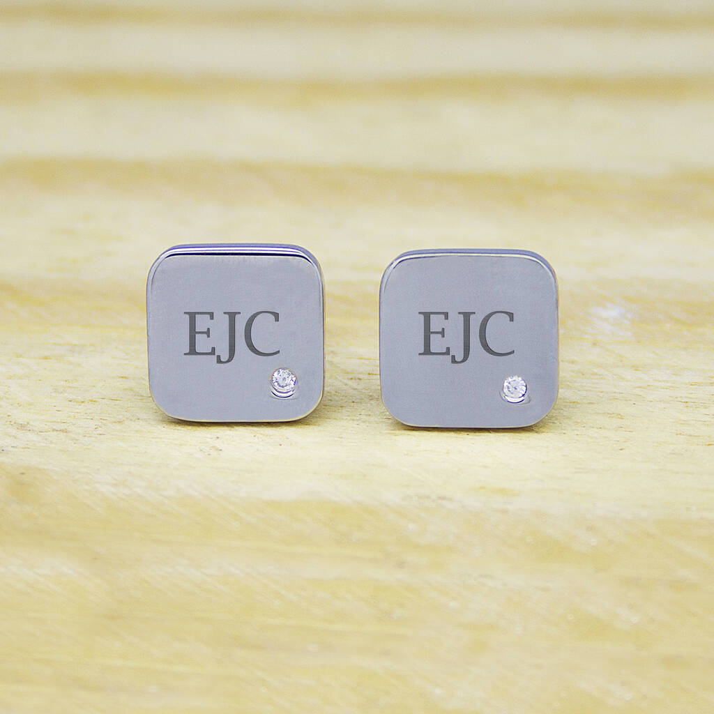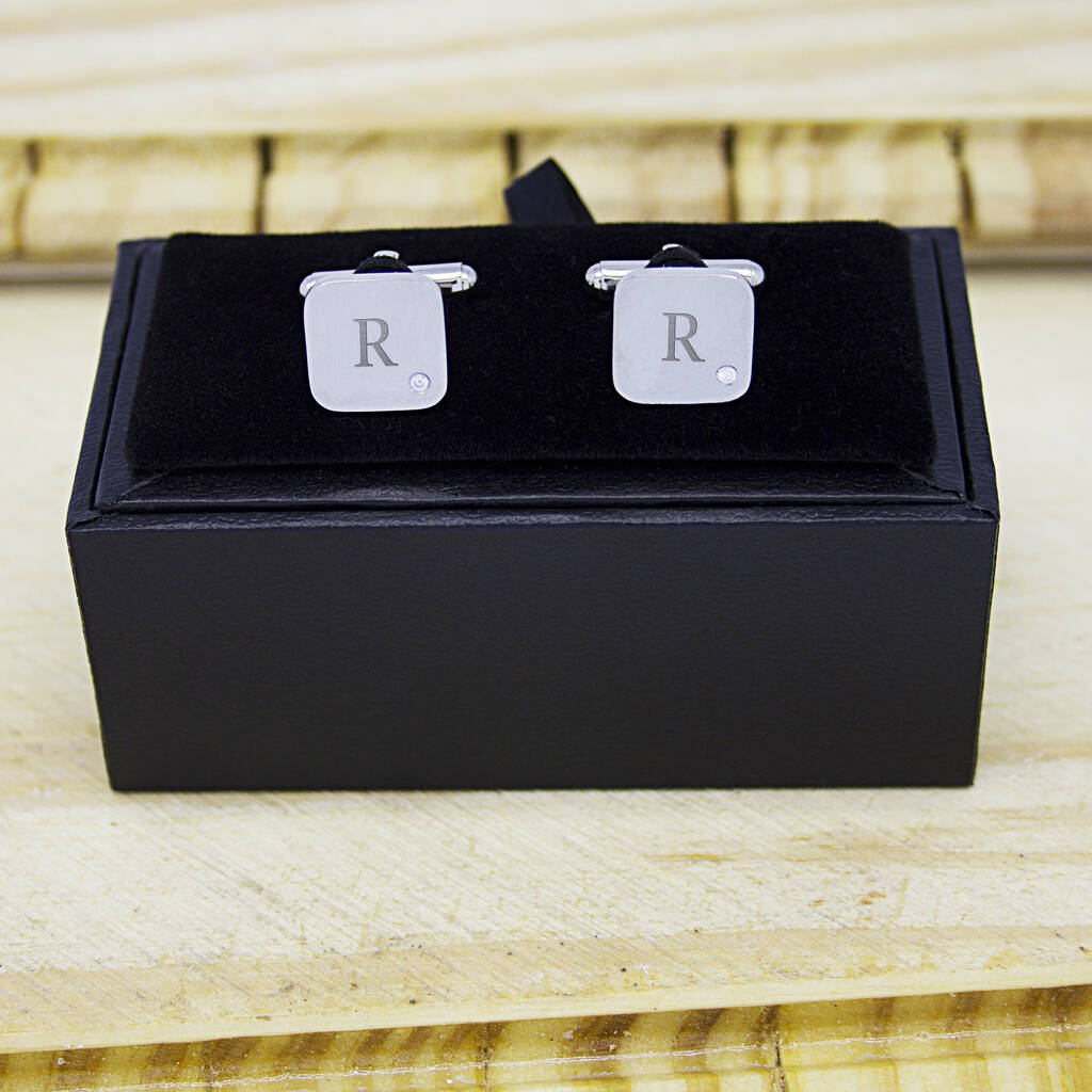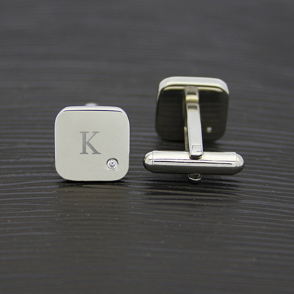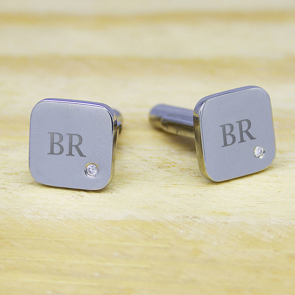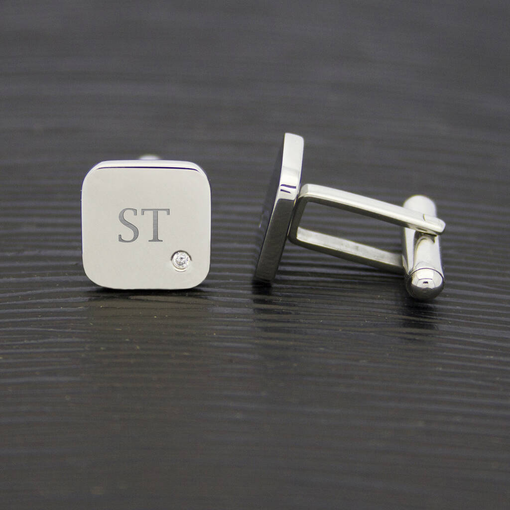 Personalised Men's Square Cufflink With Crystal