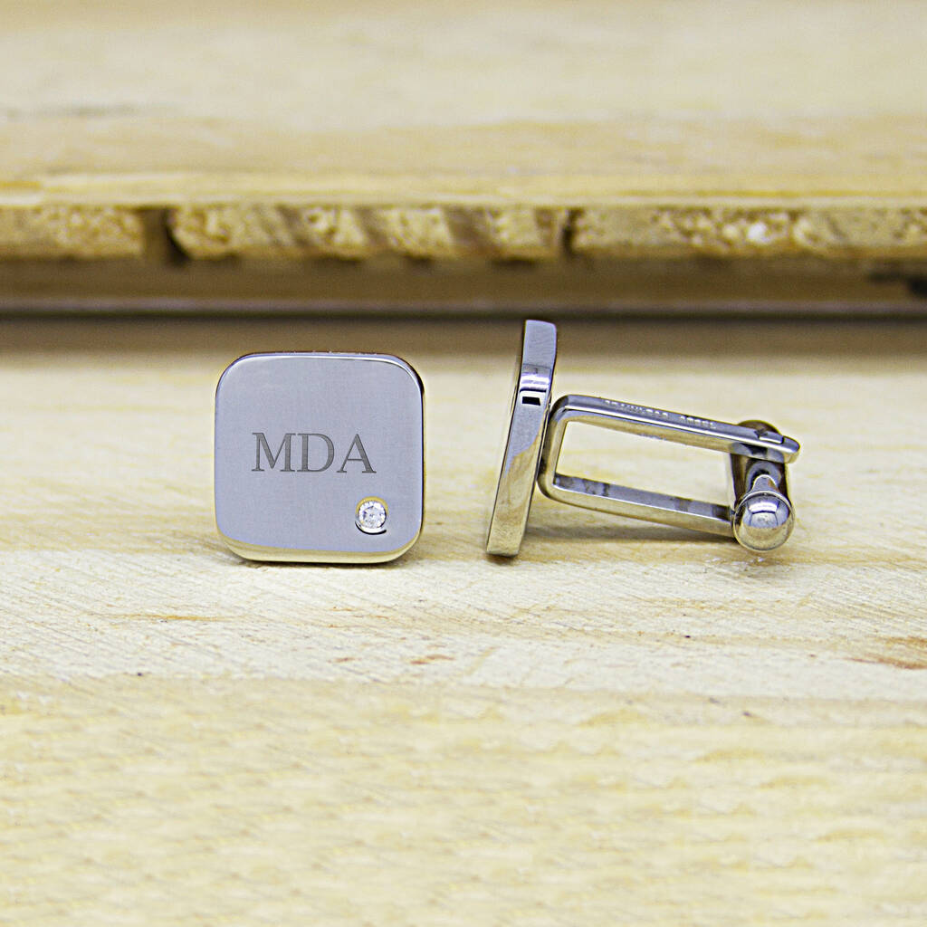 Personalised Men's Square Cufflink With Crystal, 1 of 7