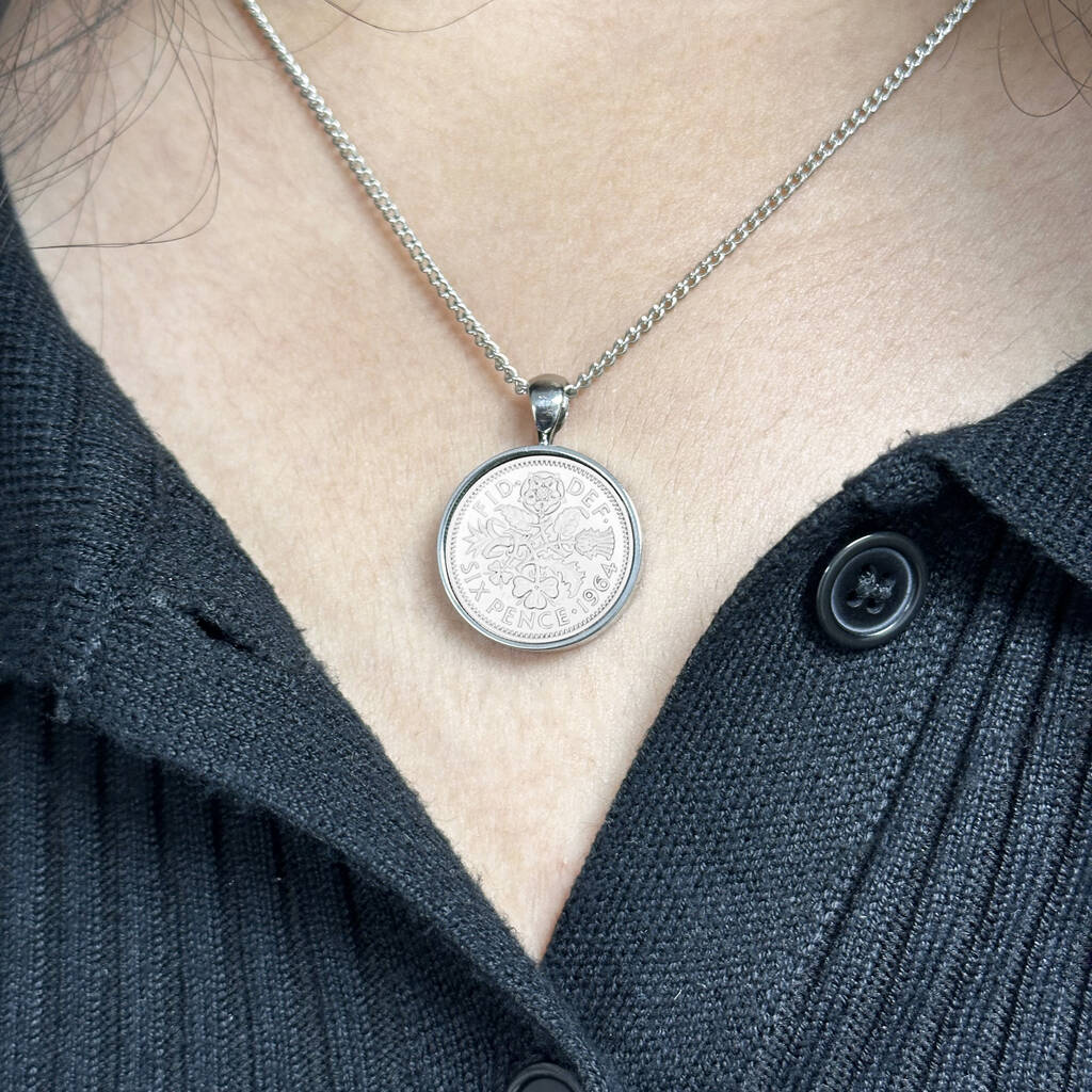 Personalised Silver Plated Lucky Sixpence Necklace, 1 of 3