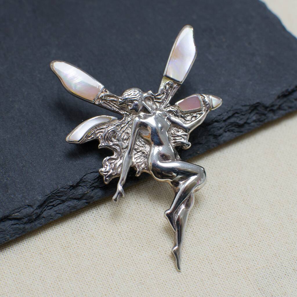An enchanting Sterling Silver and Shell Fairy Shaped Brooch - the perfect birthday, Mother's Day, Valentine's or Christmas gift for her.