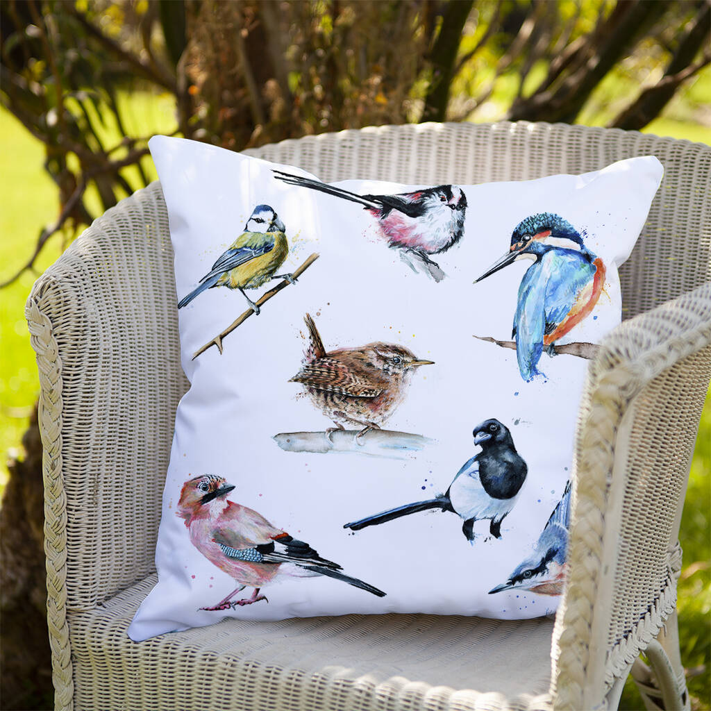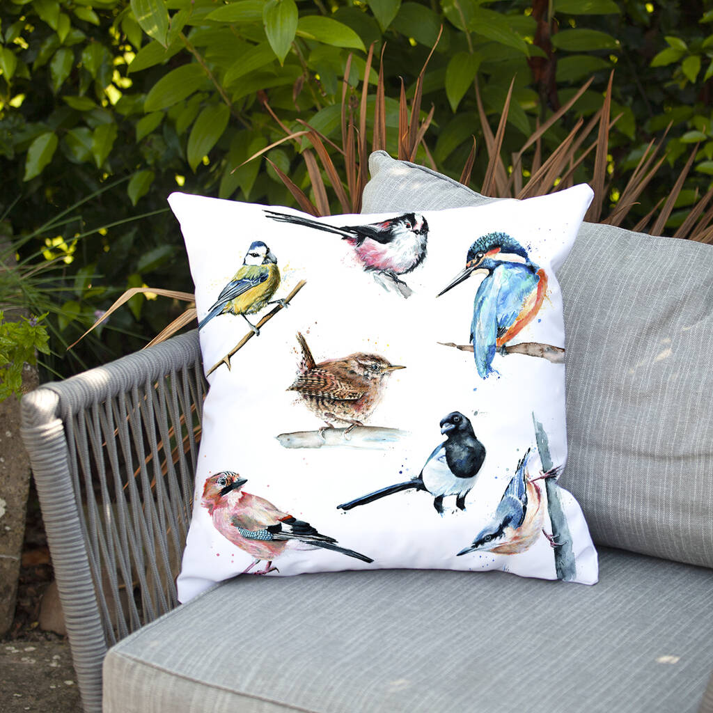 A super luxurious garden cushion with a removable cover, celebrating my hand-drawn Inky woodland and garden bird illustrations. Add a touch of country living glamour to your outdoor furniture or summer garden party BBQ. All made in the UK to the highest standard as always, the coated canvas cushion cover features a hidden zip on the back to make it fully removable and machine washable and includes a full and squishy cushion pad so it's ready to use straight away.