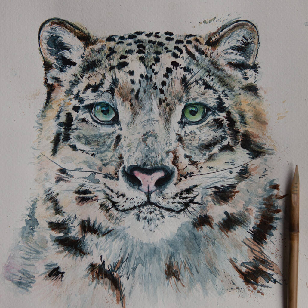 Featuring my cool toned Inky Snow Leopard hand drawn illustration, this heavy-weight 100% Cotton tea towel is the perfect Kitchen accessory.