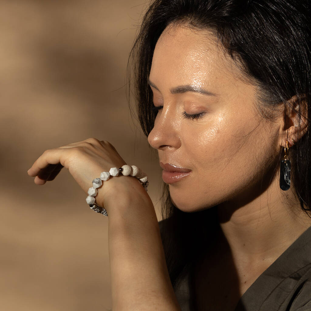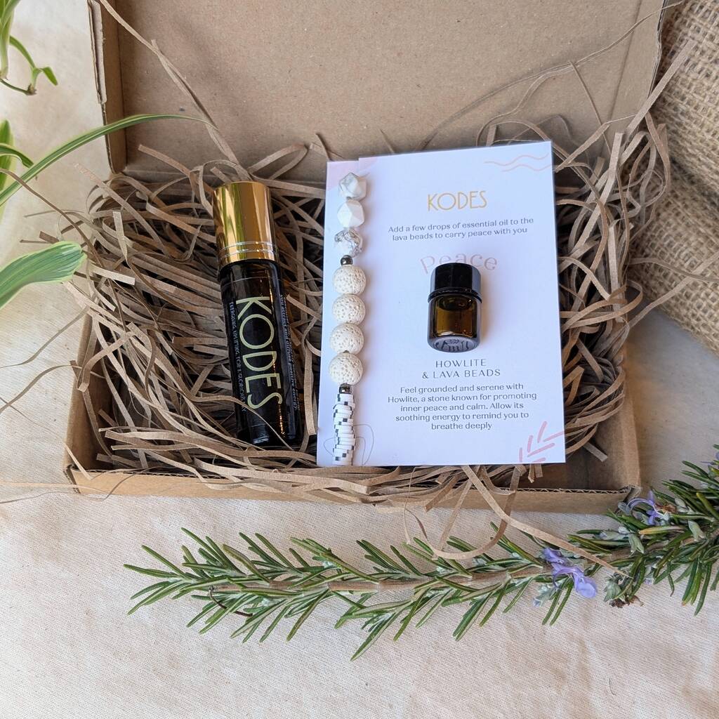 Treat someone special, or yourself, to a soothing little ritual in a box. This gift set pairs Kodes’ Howlite and lava bead diffuser bracelet with our uplifting essential oil pure-fume roller, so you can enjoy aromatherapy wherever you are.