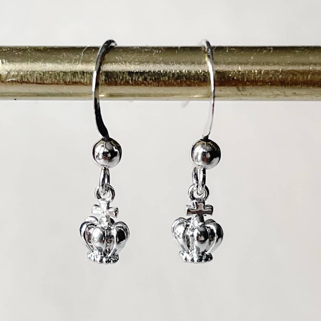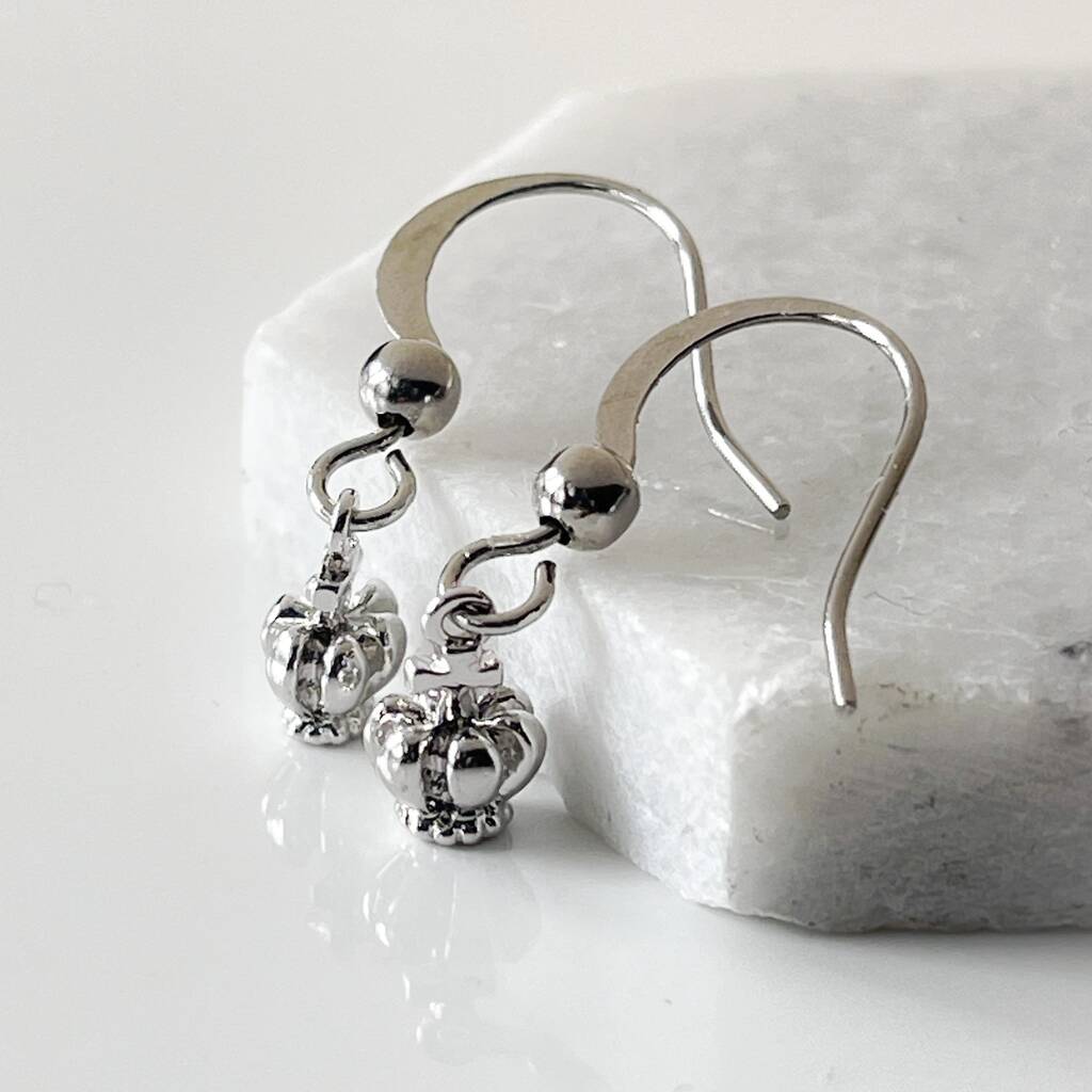 Tiny Crown Earrings Rhodium Plated Hook Earrings Gift