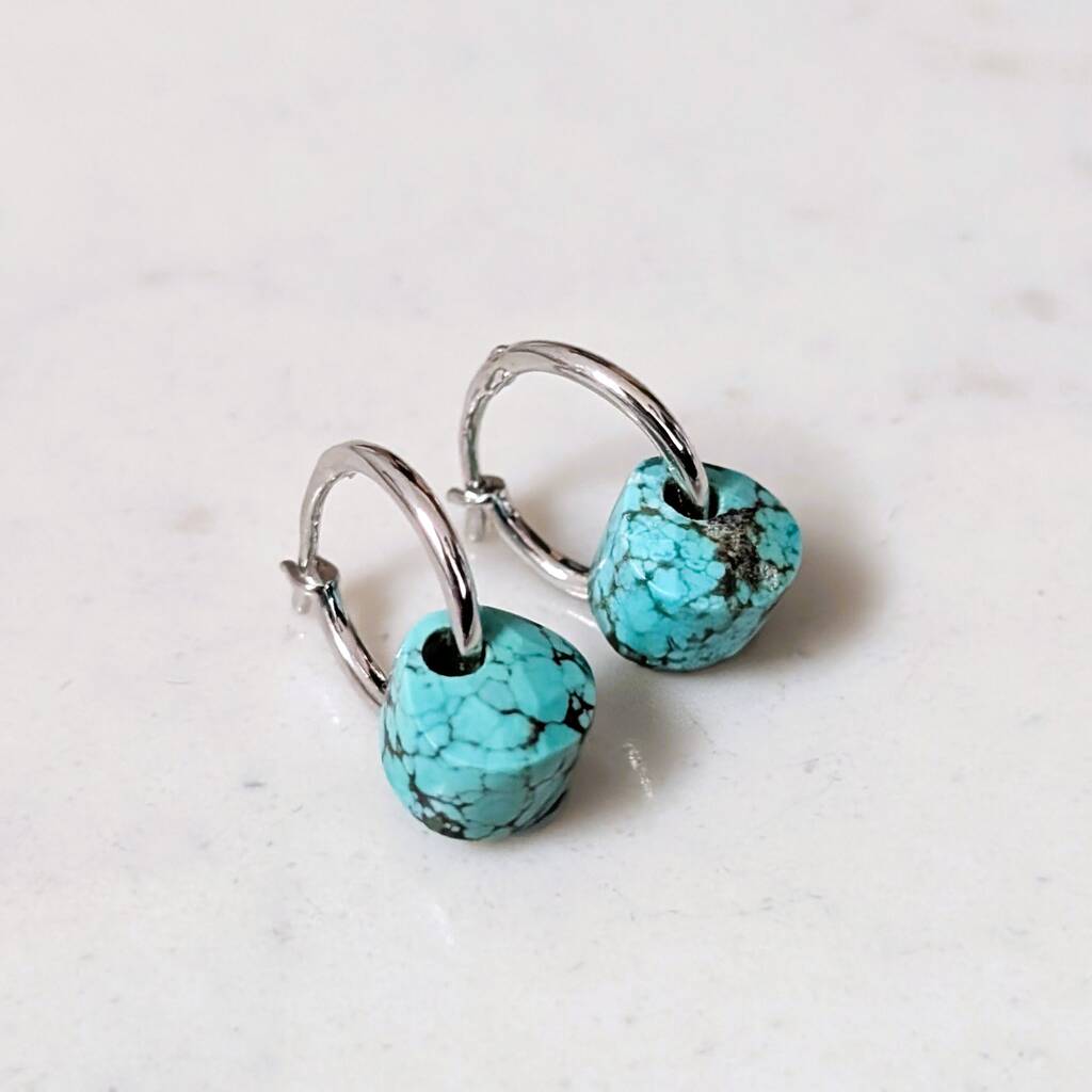 Turquoise Teardrop December Birthstone Earrings, Silver