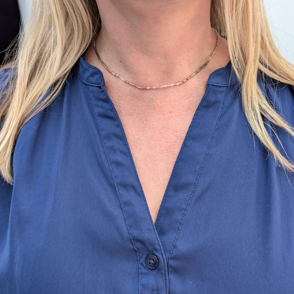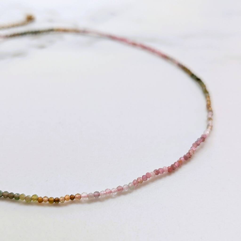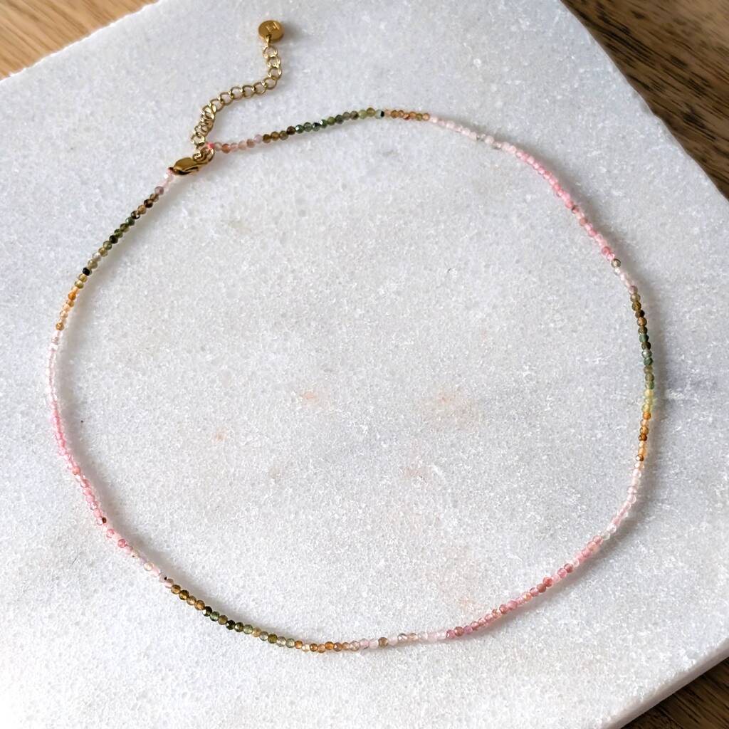 Watermelon Tourmaline Gemstone Beaded Necklace
