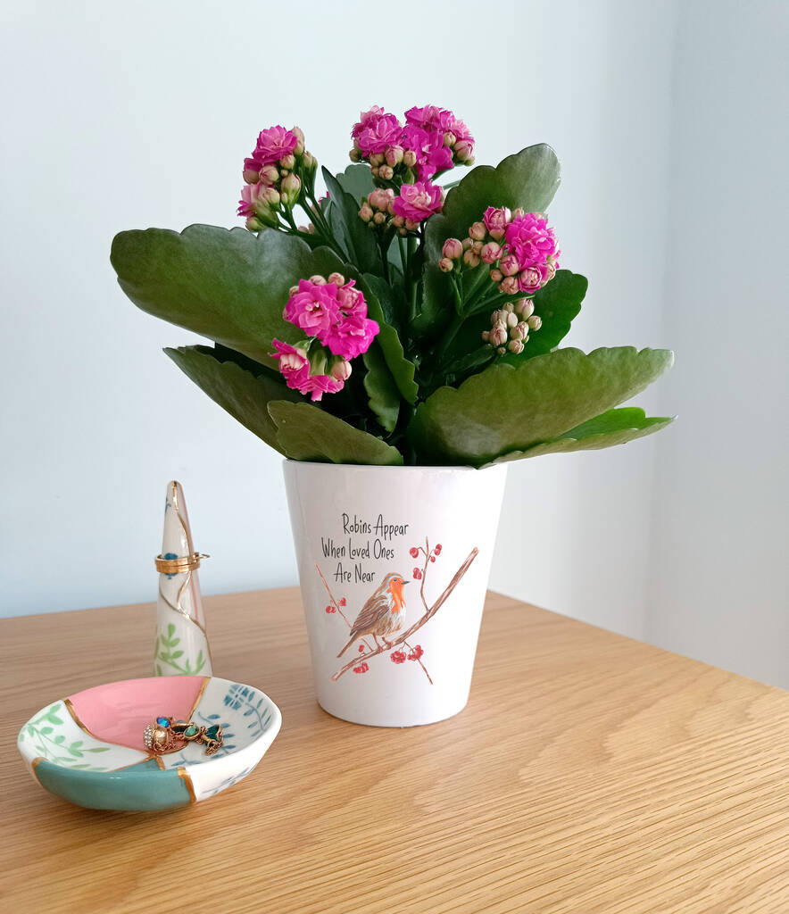 Robin Memorial Plant Pot. Personalised Flowerpot
