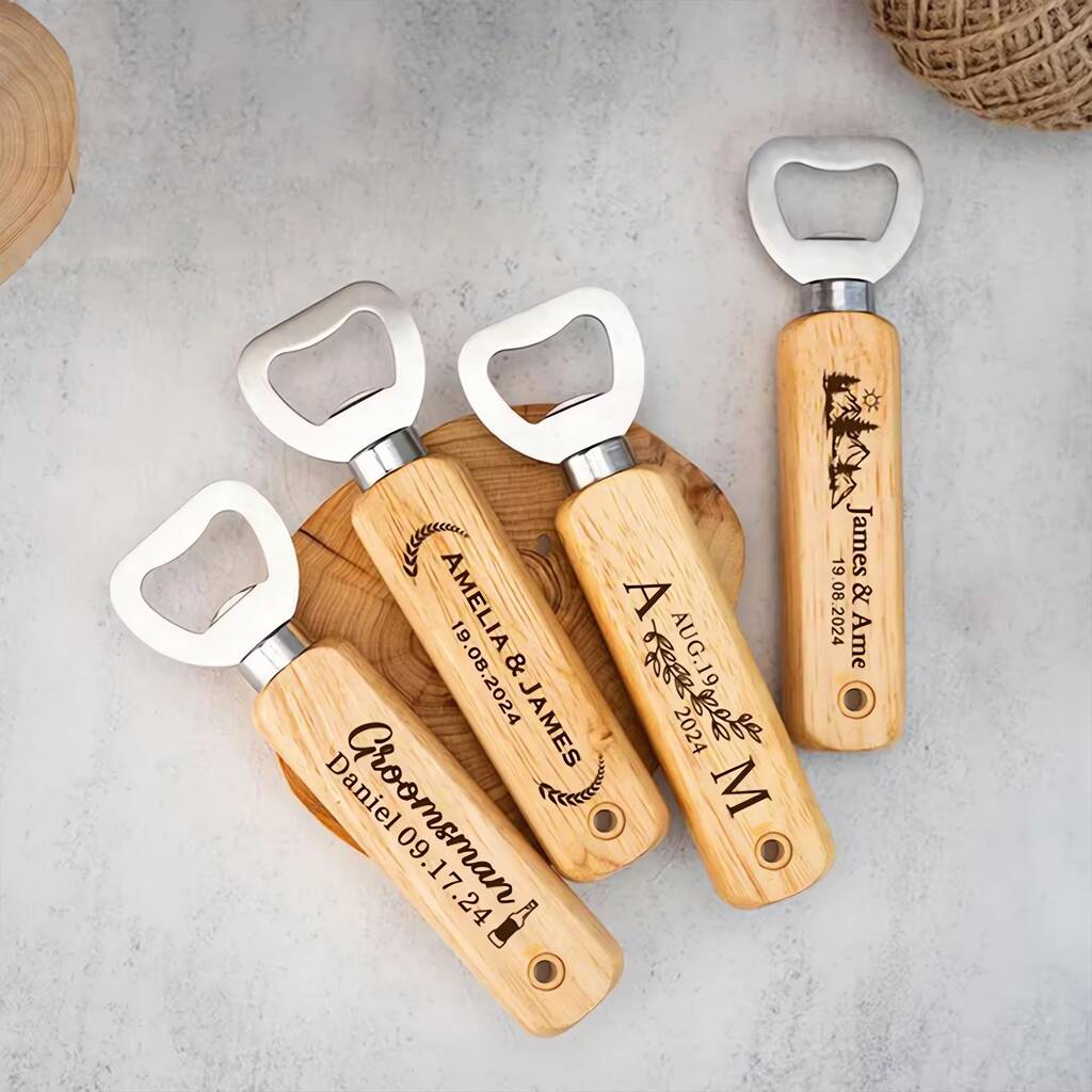 A personalized wooden bottle opener with custom engraving, multiple fonts and design styles — a perfect gift for dads, grandpas, friends for any special occasion.This personalized wooden bottle opener is a unique and practical gift, perfect for dads, grandpas, friends, or anyone who enjoys a cold drink with style. Crafted from durable stainless steel with a smooth wooden handle, it opens all standard bottle caps effortlessly. Its elegant design can be customized with multiple fonts and design styles, allowing you to add names, dates, or short messages. Ideal for birthdays, Christmas, Father’s Day, Thanksgiving, or simply showing appreciation, it’s great for home, bars, kitchens, parties, and more. Comes gift-ready with a sleek black bag for an extra special touch.