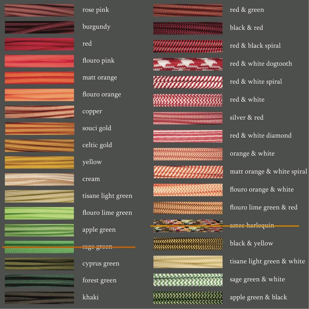 Cable Colour - Black, Grey, White, Cream, Blue, Turquoise, Green, Yellow, Brown, Orange, Red, Pink, Purple, Multicoloured.