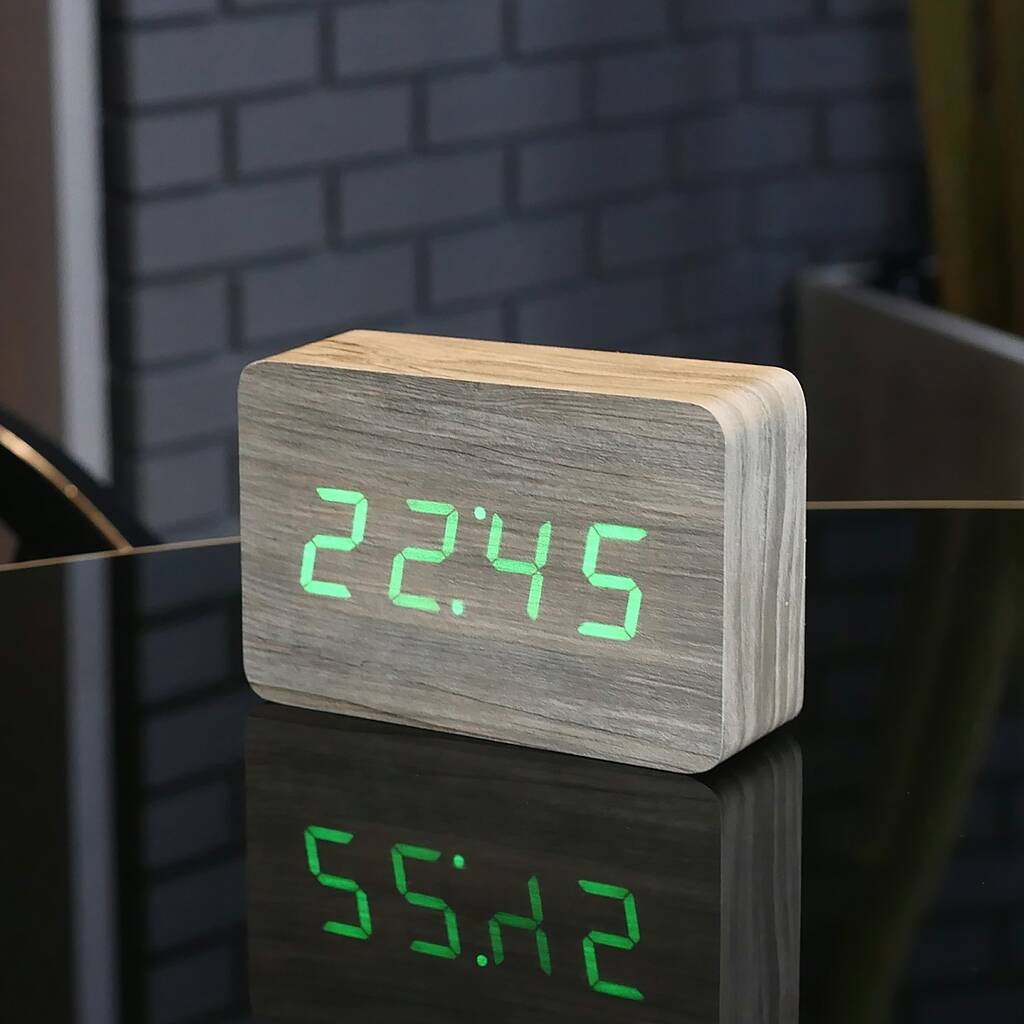 Click your fingers, clap your hands or gently tap your bedside table and the time, date & temperature will alternately appear for you in LED British designed and quality made rechargeable brick click clock with LED light. If you need to check the time in the middle of the night or early in the morning, you can just give a gentle tap to your bedside table and the time will appear. No constant blinking digital glow, nor do you have to fumble to find your smartphone in the dark.
