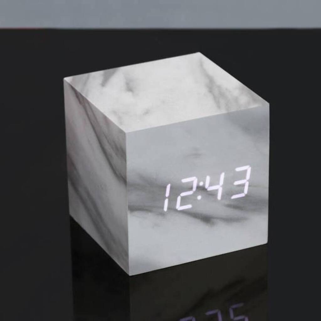 Cube Marble Click Clock White LED