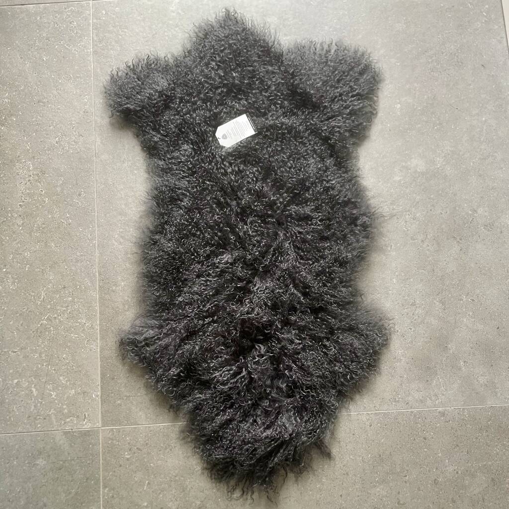 Curly Tibetan Sheepskin Rug Dark Grey