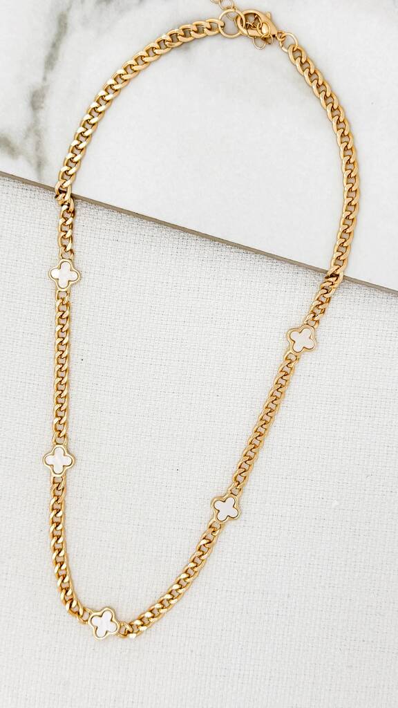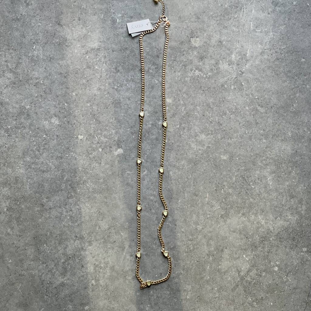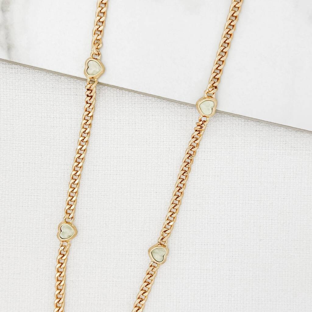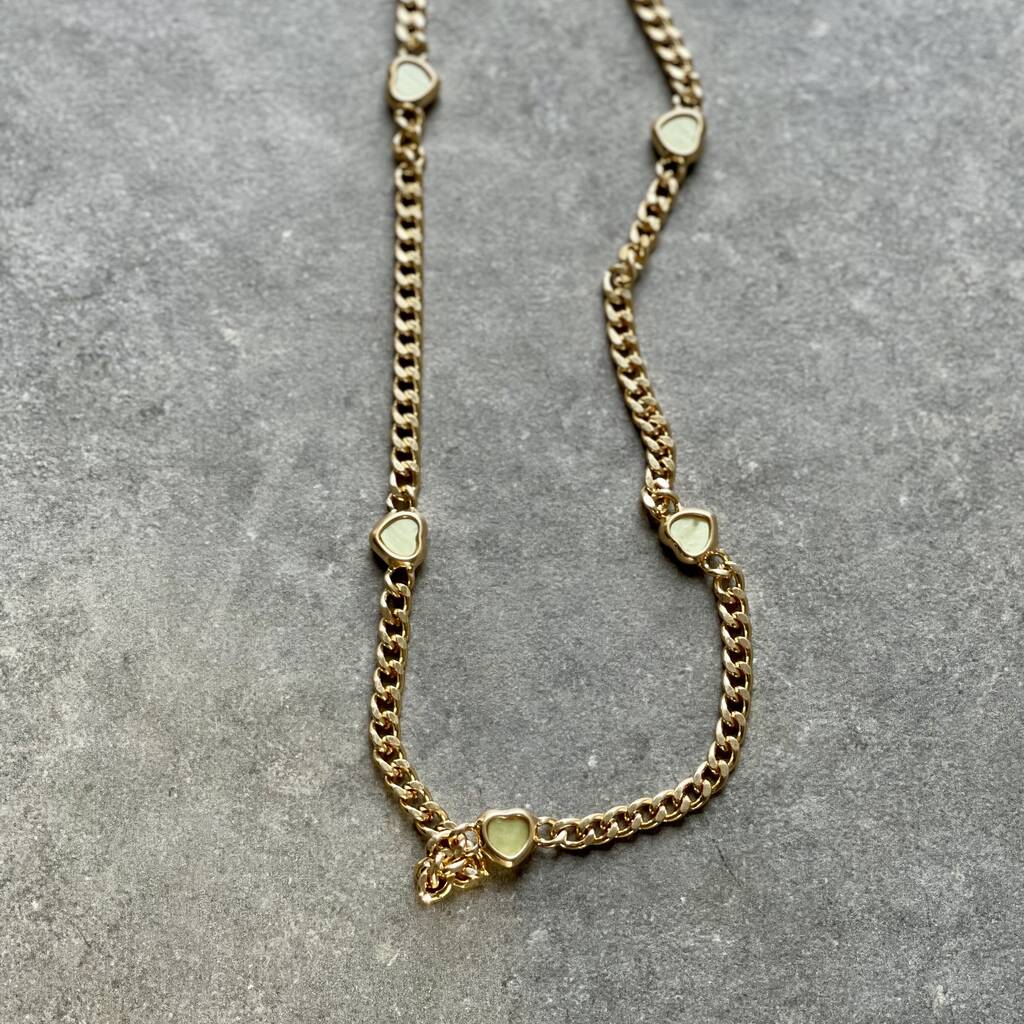 Gold Curb Chain Necklace With Three Pale Green Hearts