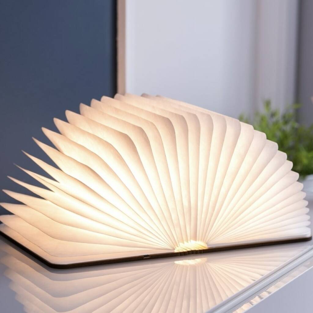 The Gingko Maple LED Smart Book Light masquerades as a simple hardcover book when closed, but open it up and it transforms into a sculptural light. A micro-USB charger is included.