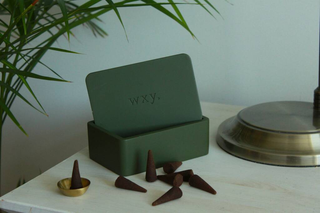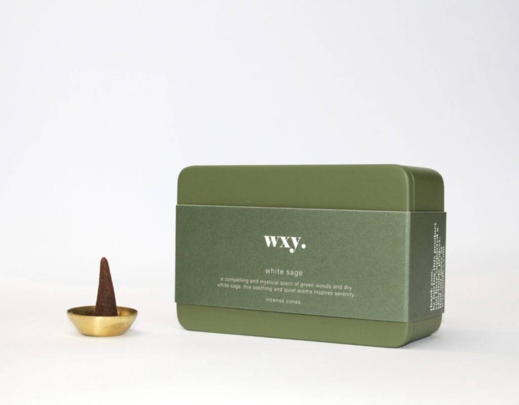 A compelling and mystical scent of Green woods and dry White sage. This soothing and quiet aroma inspires Serenity.20 fragranced incense cones in a branded WXY concrete box. Each product contains a brass plate to burn your incense cone in. Re-use the concrete box after all you cones have been used to store odds and ends or for as a soap dish. Scent: Green woods and dry White sage.