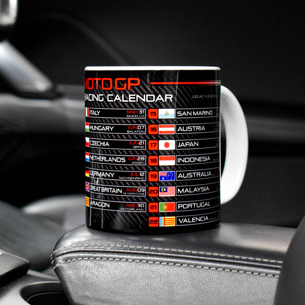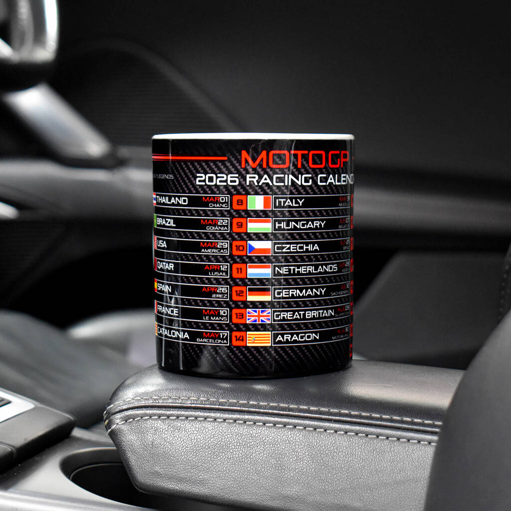 Introducing the Moto 2026 Circuits Mug – a thrilling tribute to the premier motorcycle racing series that captivates the world. Immerse yourself in the excitement of the Moto GP season with this special mug, showcasing the exhilarating race circuits for 2026 in a stylish and functional design. Features all Grand Prix names, Country coloured track outlines and finished with a carbon fiber background. All printed on a high-quality ceramic gloss mug.Start your day with the intensity of a race weekend or wind down with a leisurely drink while reliving the memorable moments from the track.Whether you're a dedicated Moto GP fan or a casual observer of Motorsport excellence, this mug is a collector's item that captures the essence of the 2026 racing season. It's the perfect way to commemorate your favourite races, anticipate upcoming events, and celebrate the incredible skills of the world's top riders.Get ready to embark on a journey through the 2026 season, one sip at a time.They are dishwasher and microwave safe. We have tested them extensively to ensure to receive a first class product.Each mug is securely packaged to make sure you receive your mug damage free.0.32 U.S. Quart - 0.3 Litre - 11 O.Z Mugs