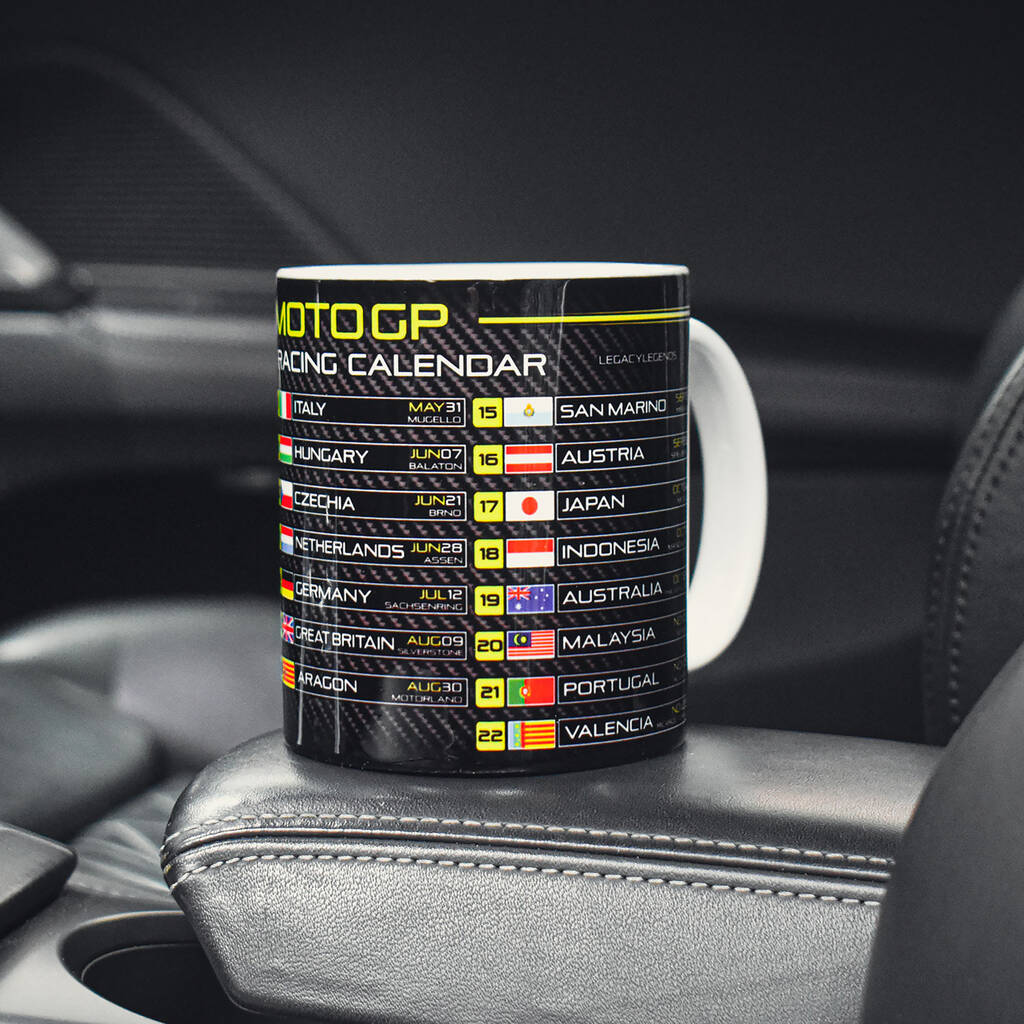 Introducing the Moto 2026 Calendar Mug – a thrilling tribute to the premier motorcycle racing series that captivates the world. Immerse yourself in the excitement of the Moto GP season with this special mug, showcasing the exhilarating race calendar for 2026 in a stylish and functional design.