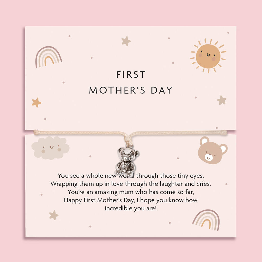 The bracelet features a delicate silver-tone teddy bear charm, symbolising love, comfort and the beautiful bond between mum and baby. It’s set on an adjustable soft cord, making it easy to wear every day as a gentle reminder of just how incredible she is.