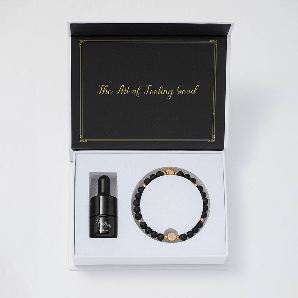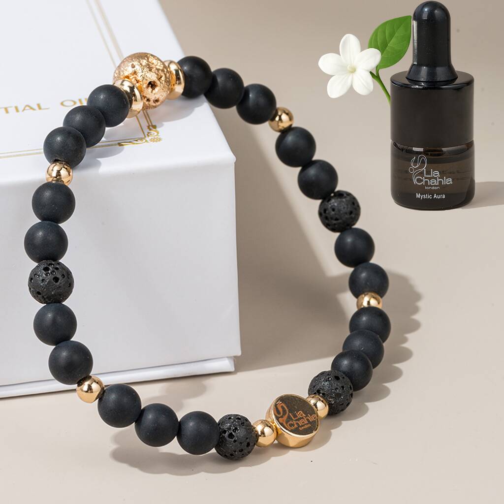 Bracelet Gifts For Men / Black Onyx Aromatherapy Bracelet With Oil Christmas Gift Set