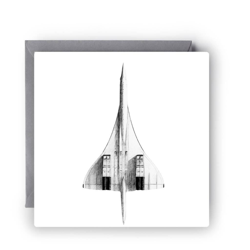 Celebrate the thrill of supersonic flight with our Concorde Greeting Card, featuring a hand-drawn design of the iconic Concorde