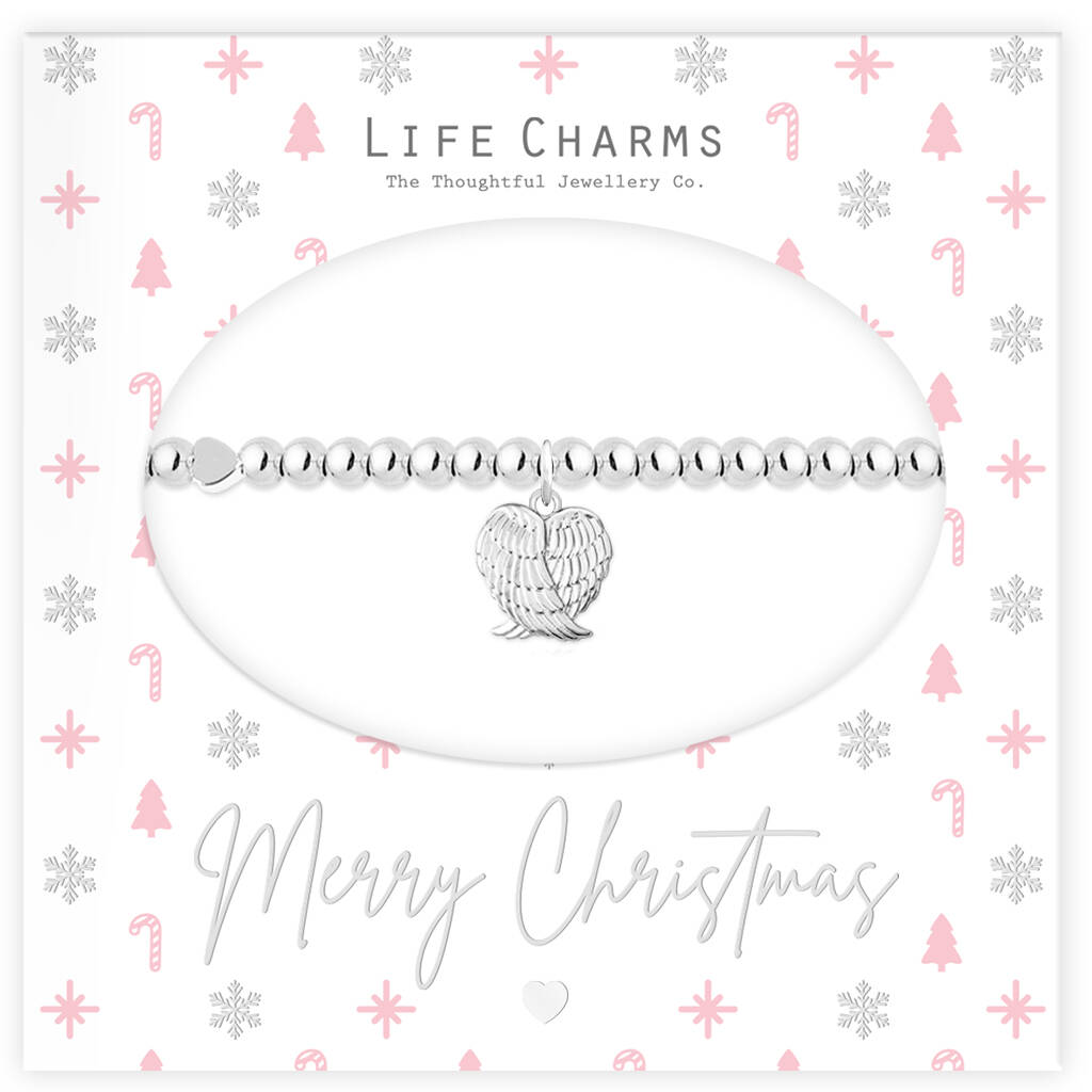 Merry Christmas Silver Angel Wings Heart Bracelet Gift, 1 of 4