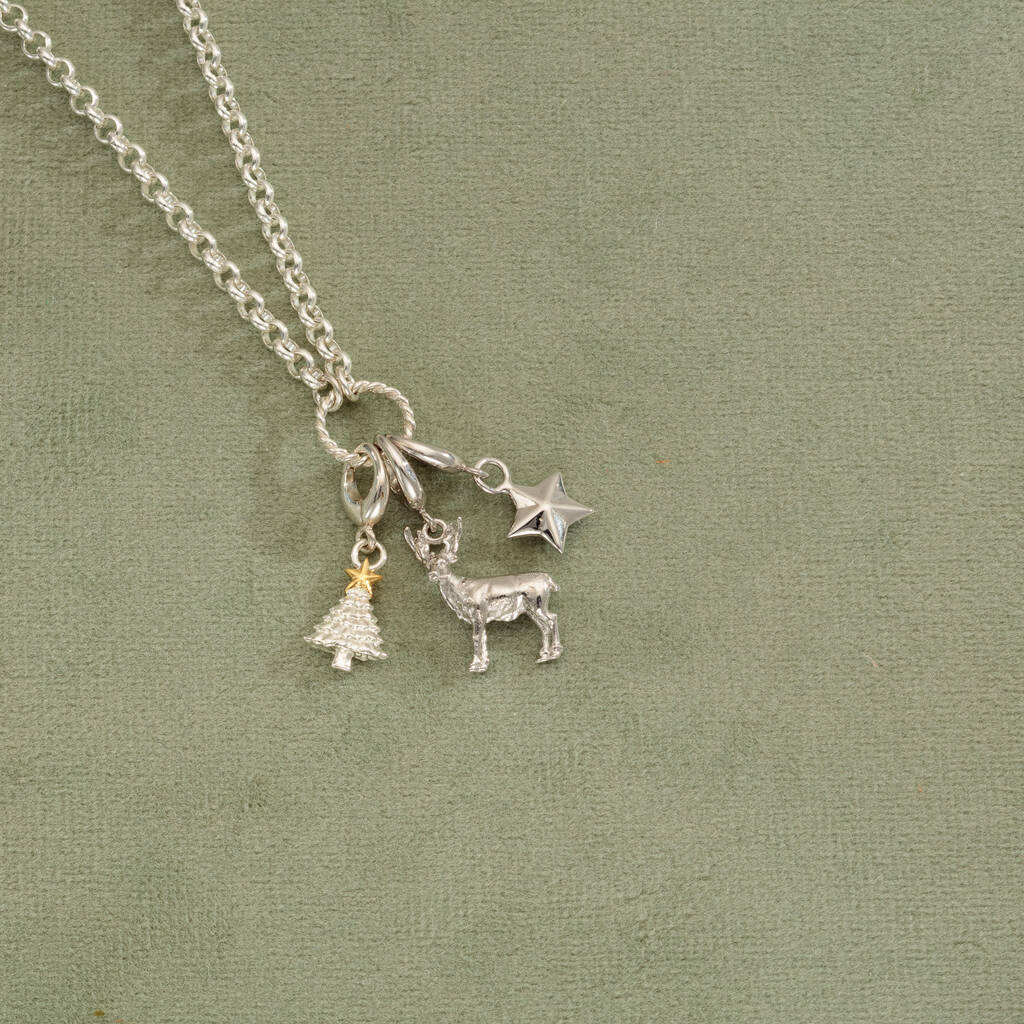 Christmas Reindeer Charm Necklace, Sterling Silver Or 18ct Gold Plated