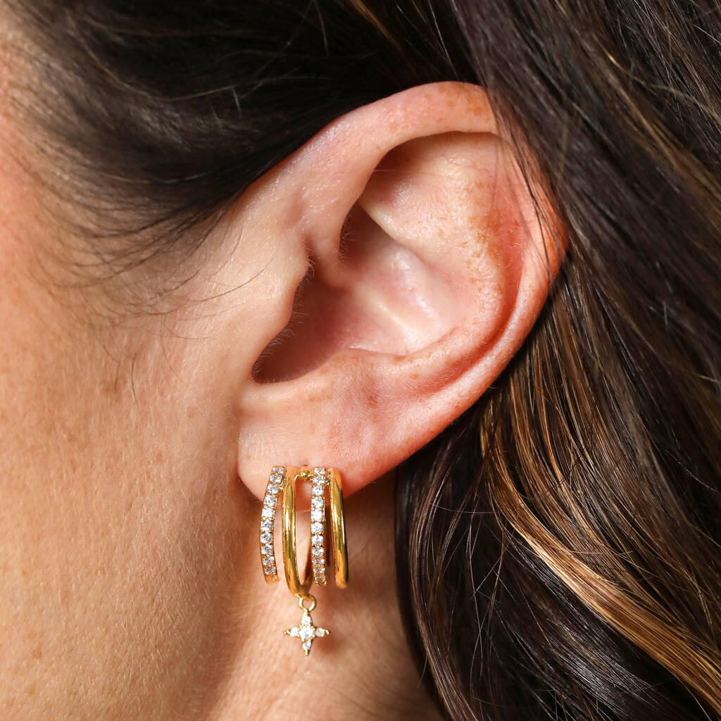 Crystal Illusion Hoop Earrings With Star Drop
