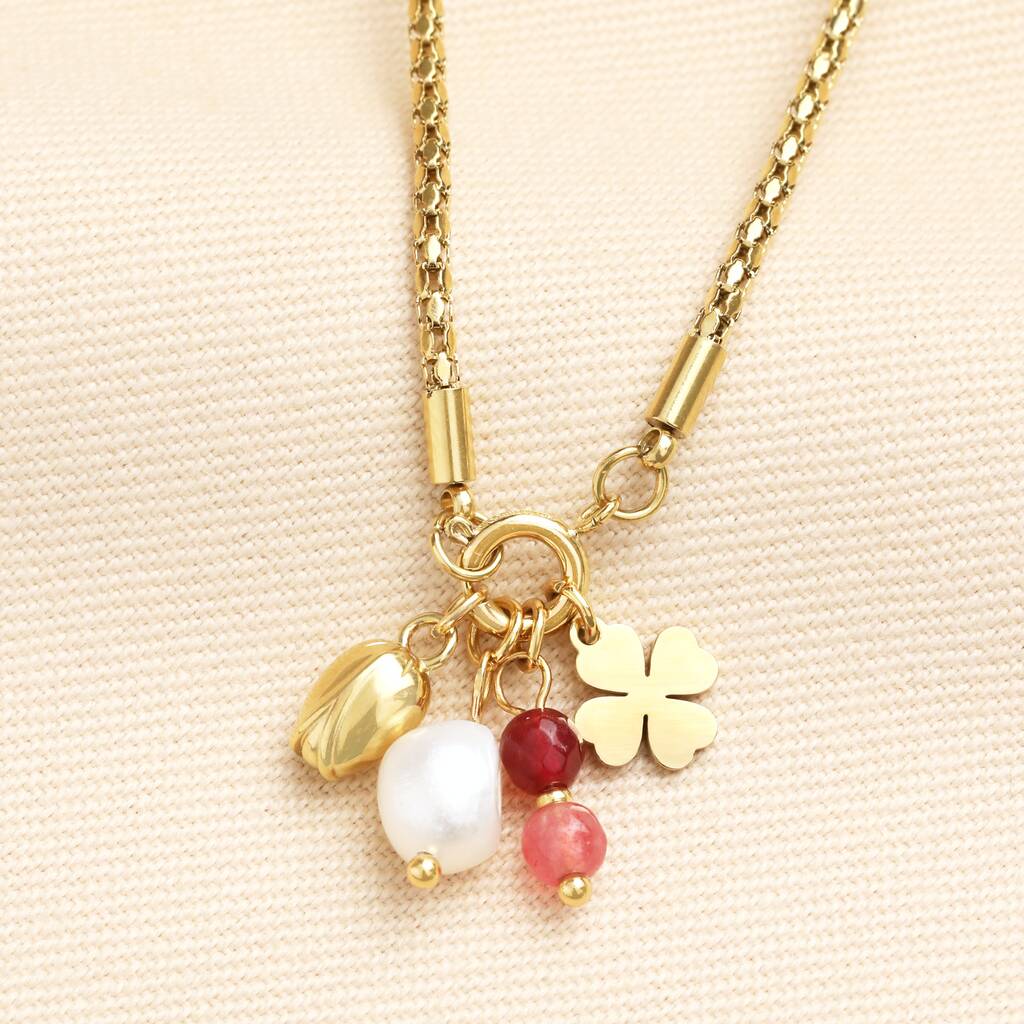Freshwater Pearl And Clover Charms Pendant Necklace In Gold