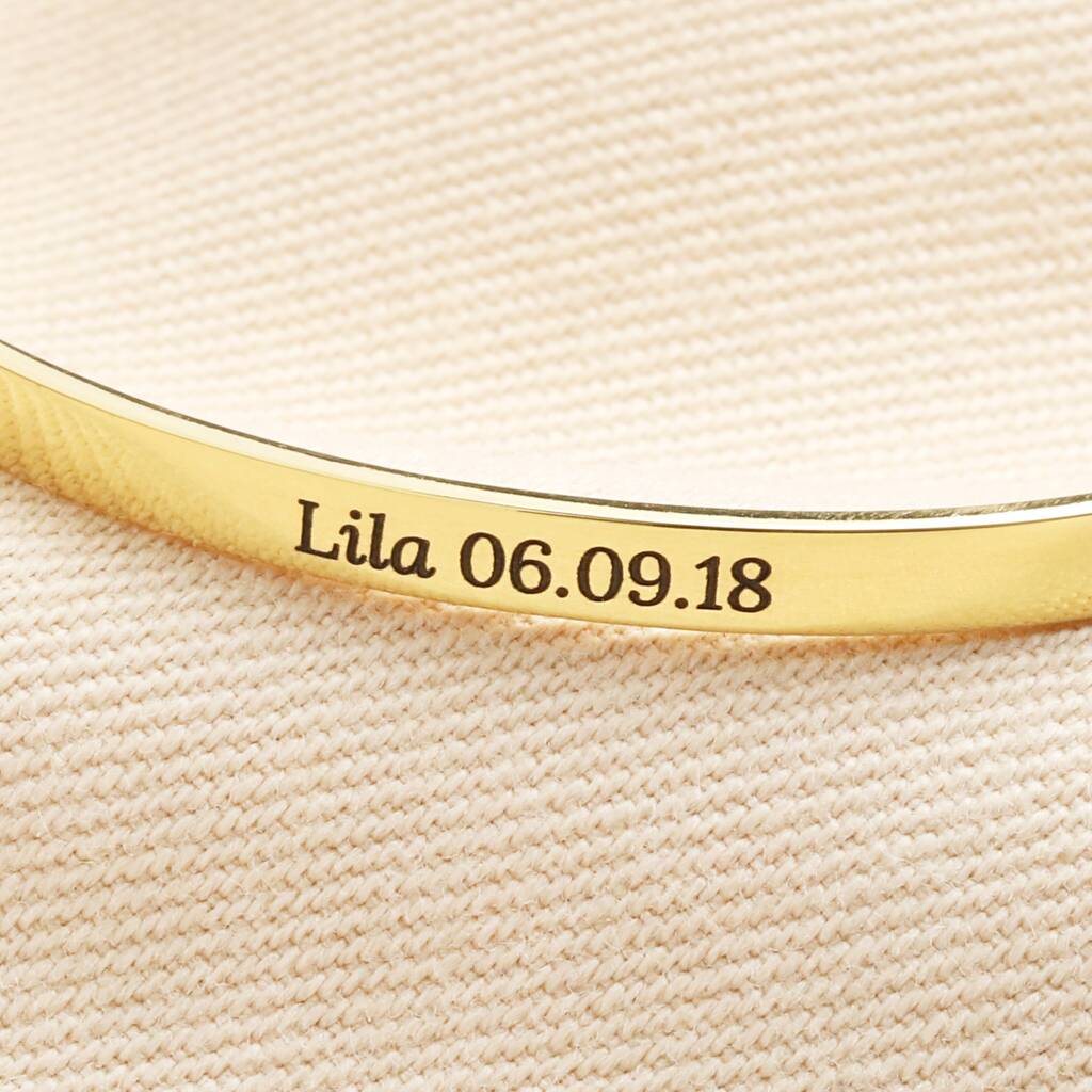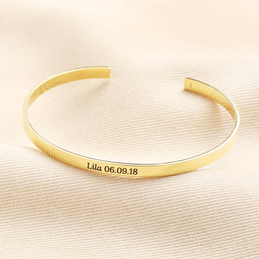Personalised Sterling Silver Flat Open Torque Bangle In Gold
