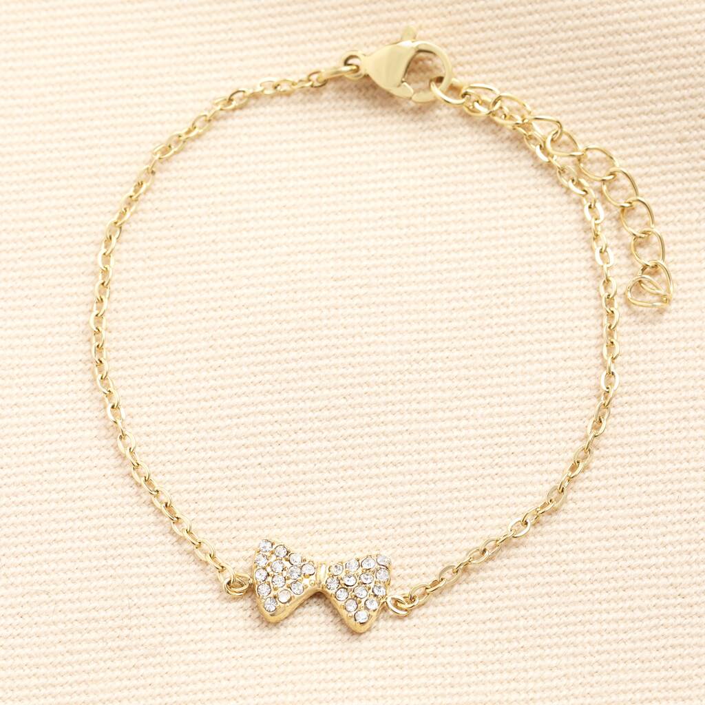 Stainless Steel Crystal Bow Bracelet In Gold Plating