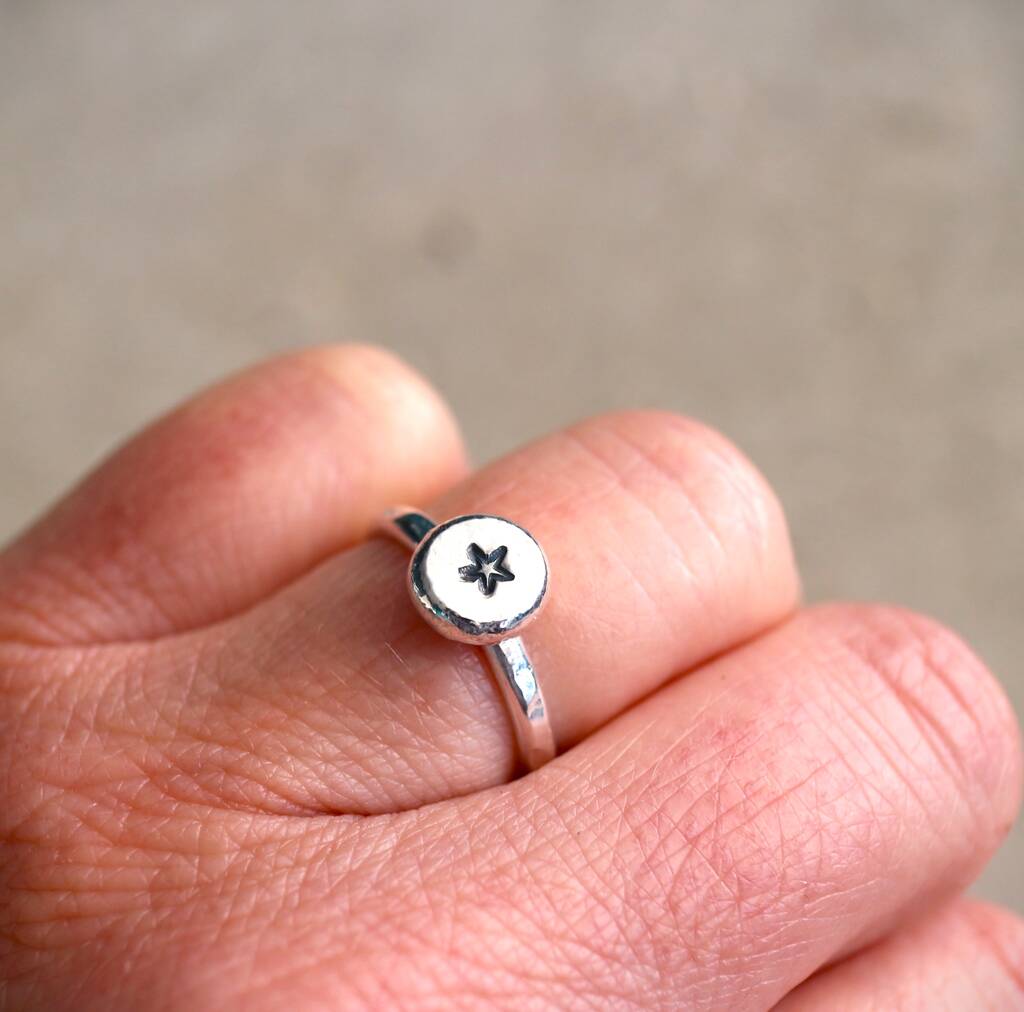 Sterling Silver Star Pebble Ring