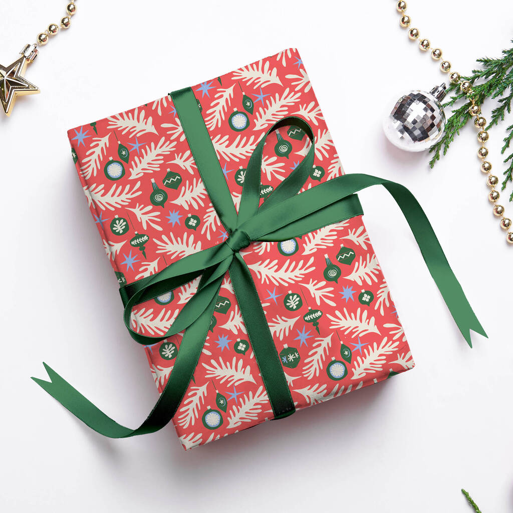 Premium Matisse Inspired Red Christmas Wrapping Paper Botanical