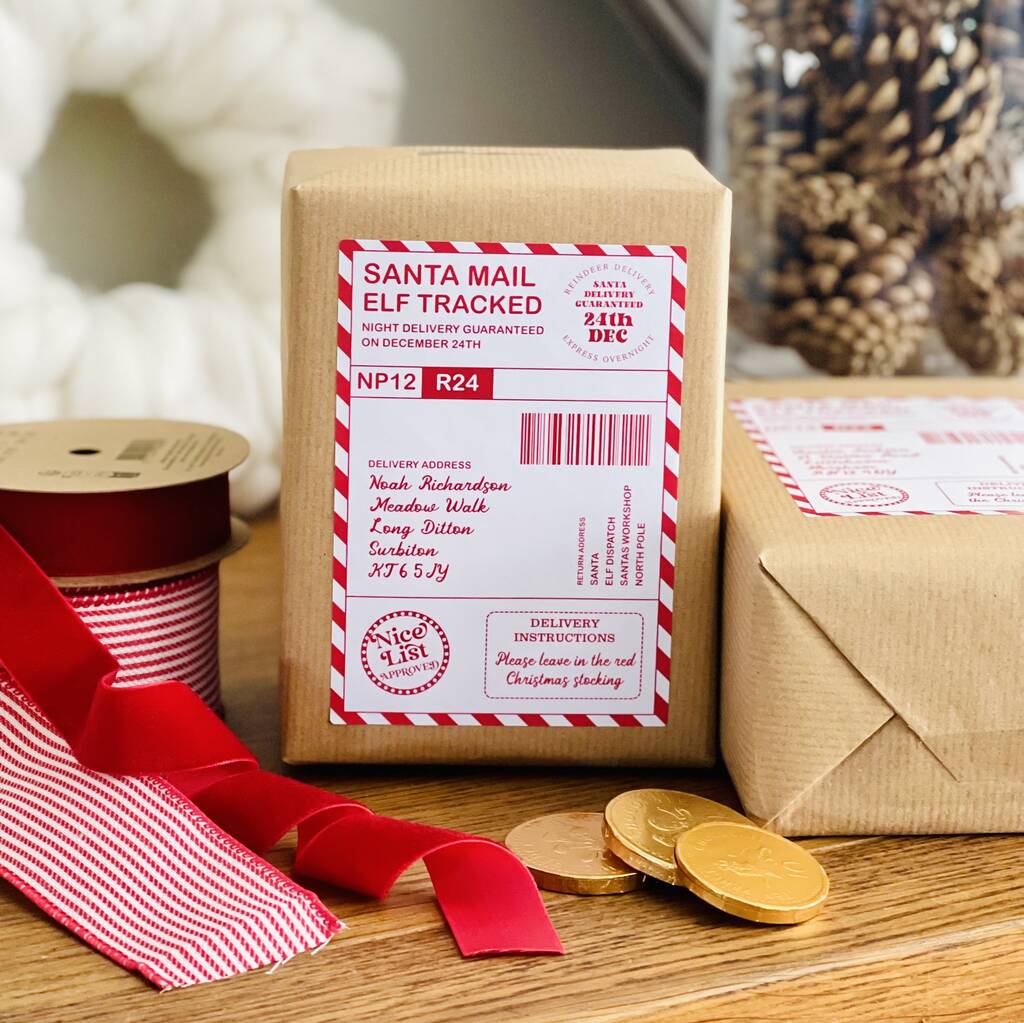 Each sticker comes complete with official “Elf Tracked” and “Nice List Approved” stamps, just like Santa’s real post office would use. Add your child’s name, address and special delivery instructions to make their gift feel truly personal.