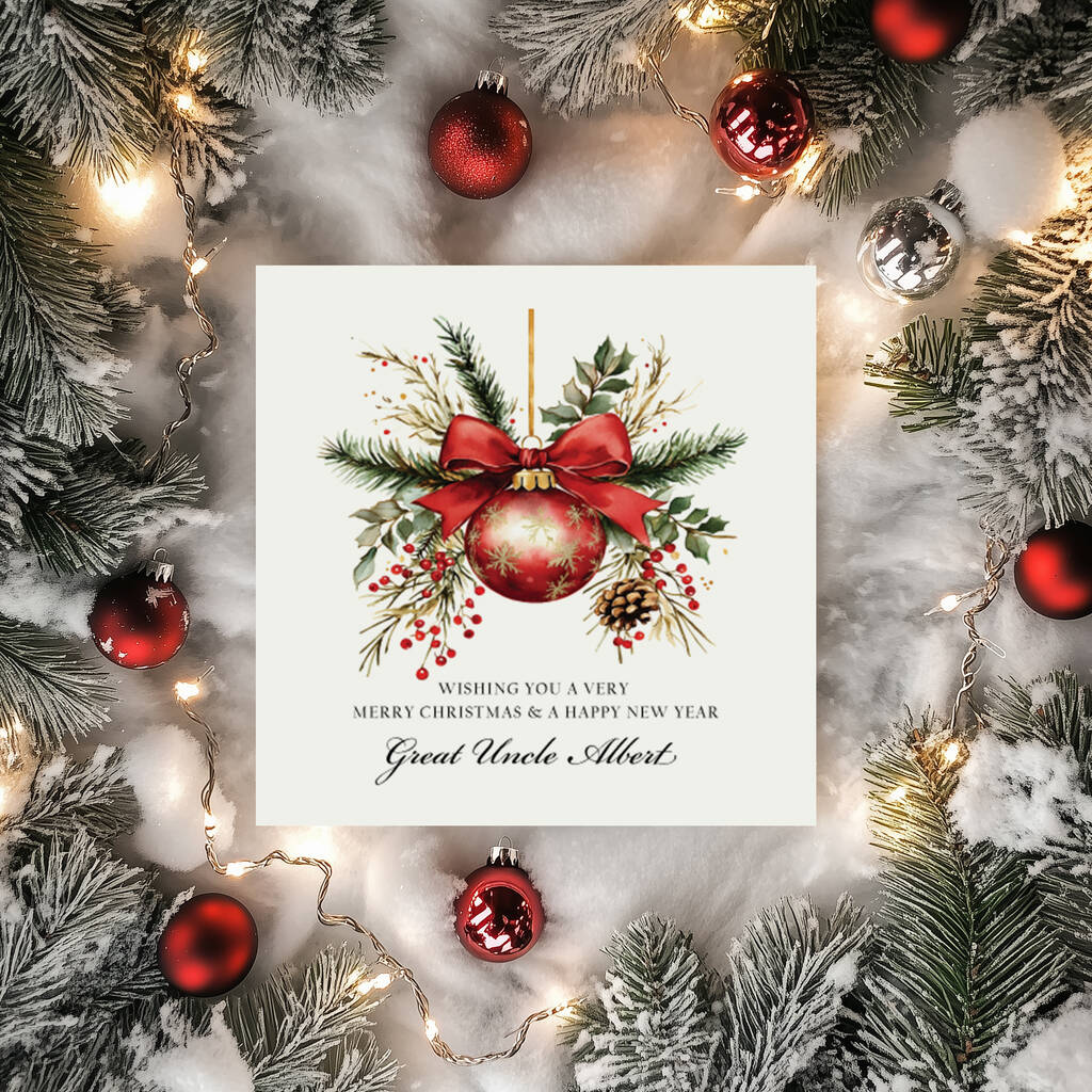 • Customisable Red Bauble Christmas Card For Any Recipient, thumbnail 1 of 3