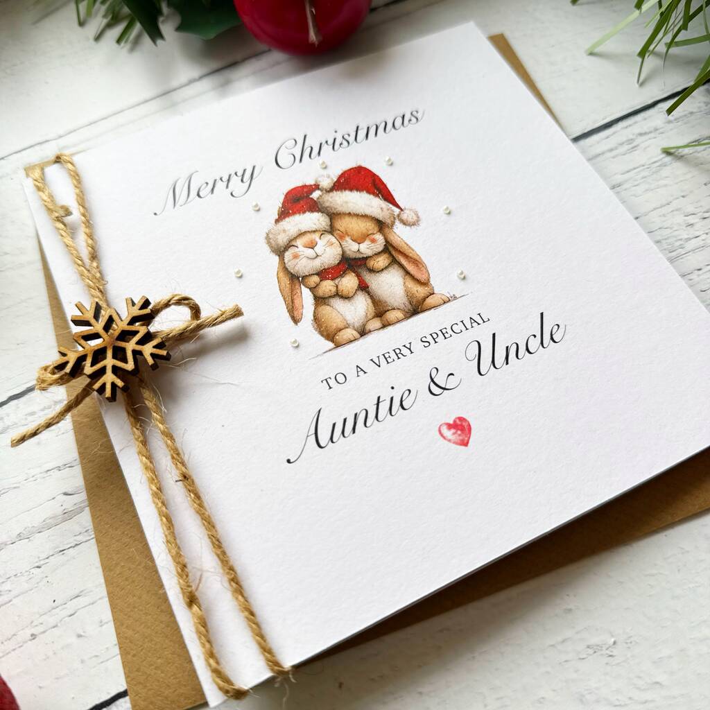 Handmade Special Auntie And Uncle Christmas Card Bunny Design