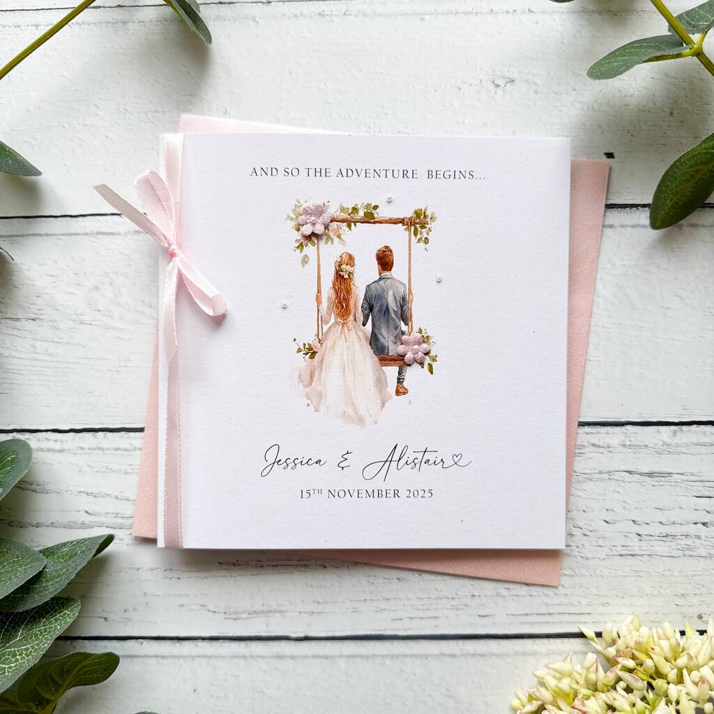 Handmade Wedding Day Card, Romantic Blonde Bride And Groom Design, 1 of 6