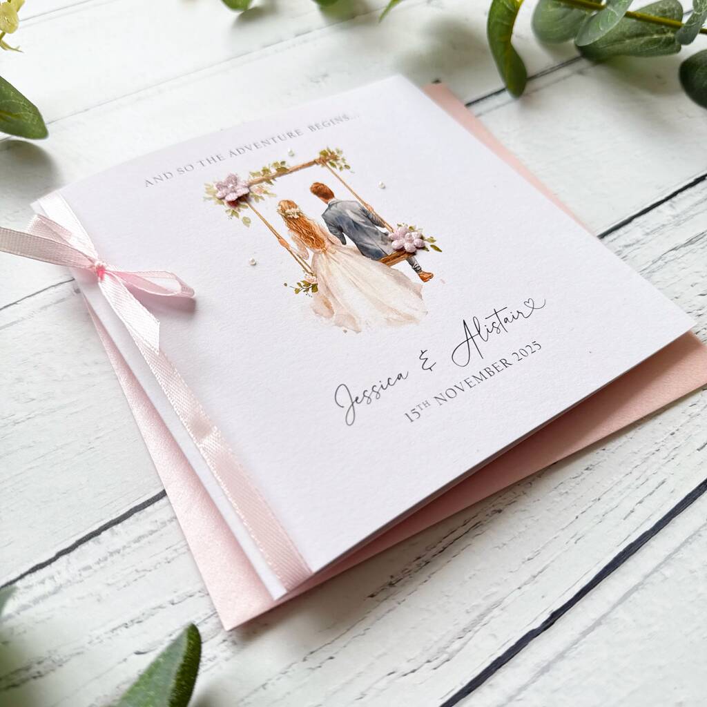 • Handmade Wedding Day Card, Romantic Blonde Bride And Groom Design, thumbnail 1 of 6