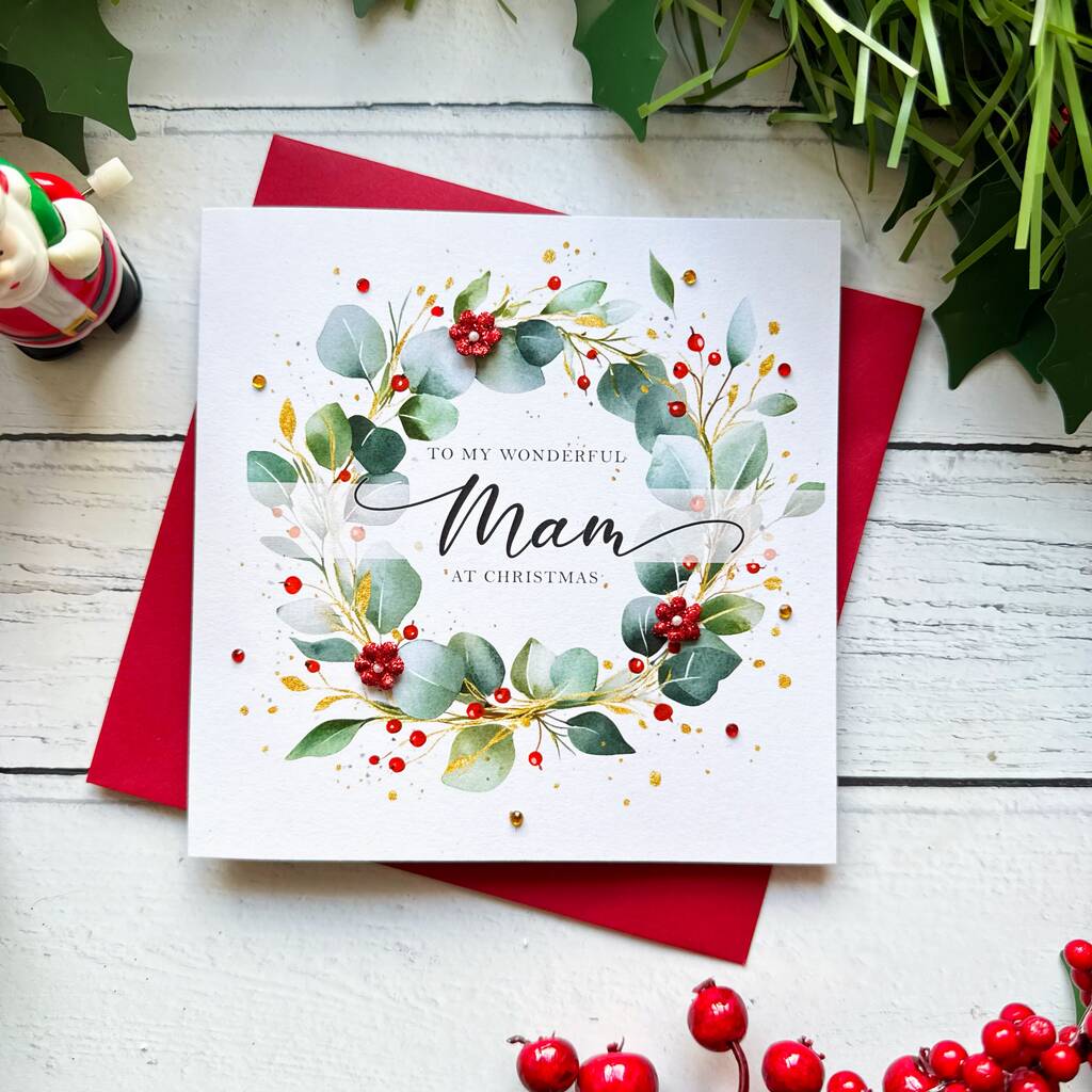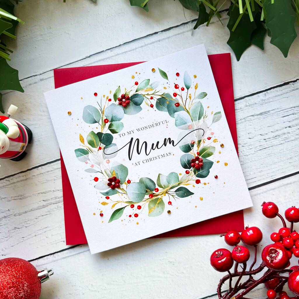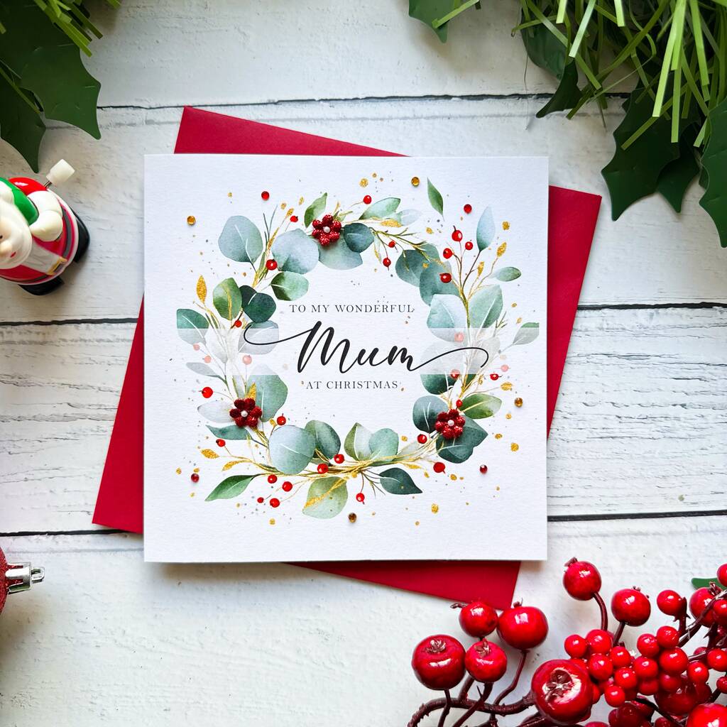 Wonderful Mum Festive Wreath Christmas Card Customisable