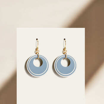 Blue And Cream Circular Earrings • Gold Plated Sterling Silver Hooks