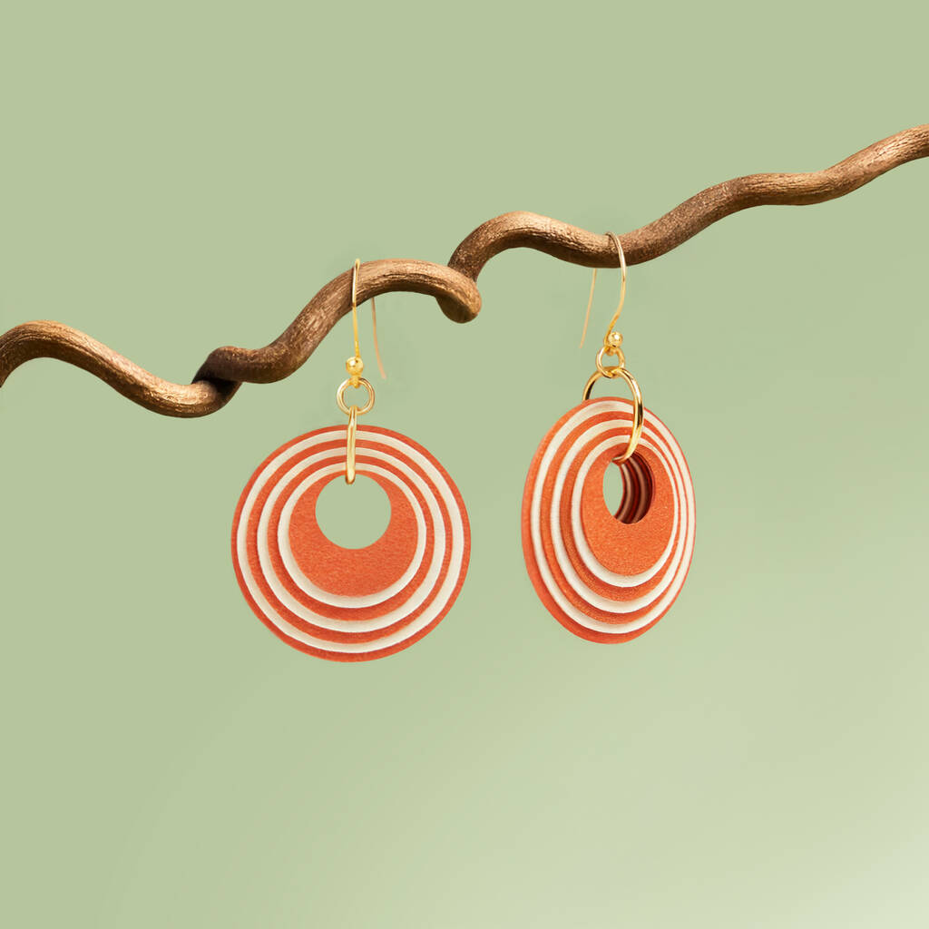 Orange And Cream Geometric Circular Earrings • Gold Plated Sterling Silver Hooks