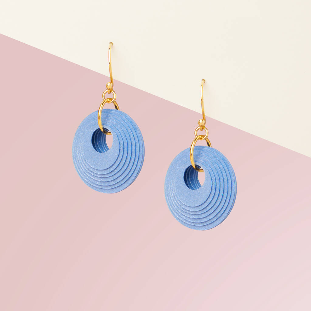 Pearlescent Blue Circular Earrings • Gold Plated Sterling Silver Hooks