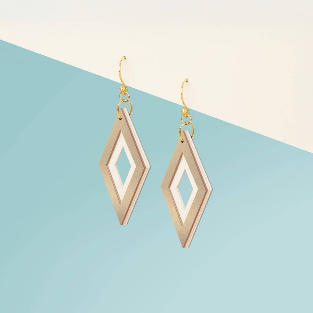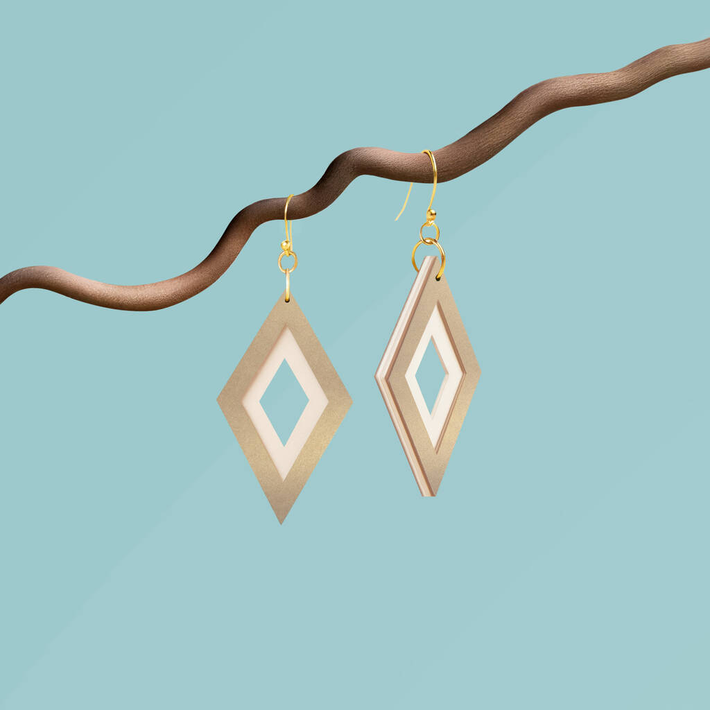 Pearlescent Taupe And Cream Diamond Shaped Layered Earrings • Gold Plated Sterling Silver Hooks