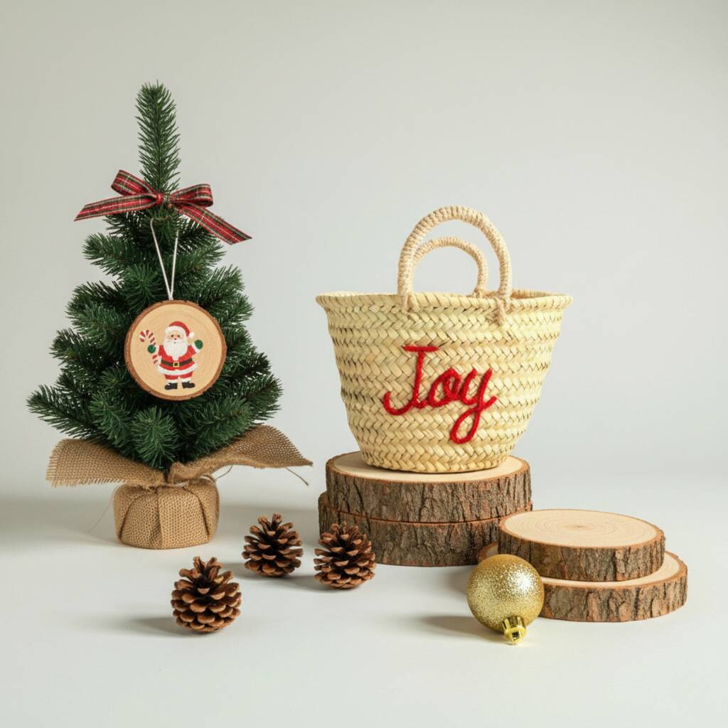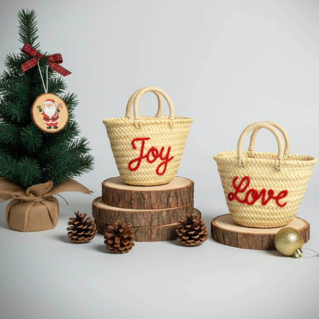 Handmade Christmas Mini Straw 'Joy' Basket, 1 of 7