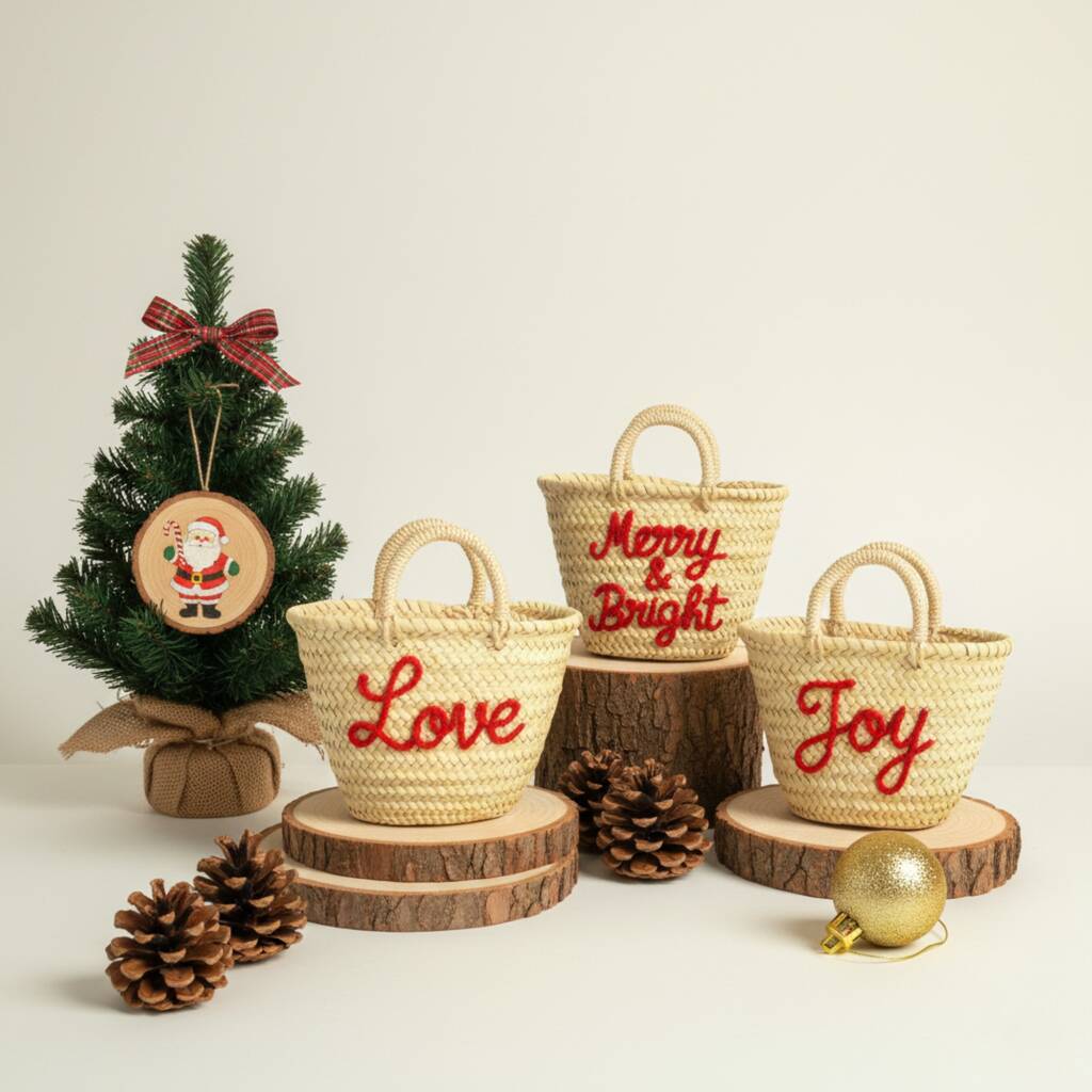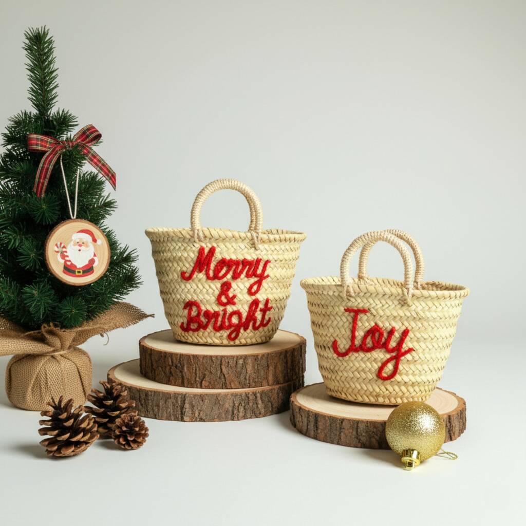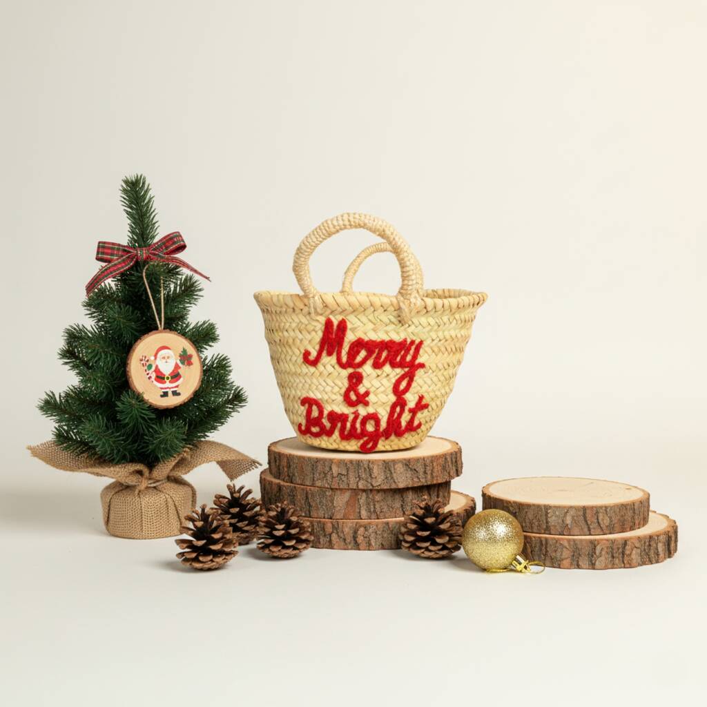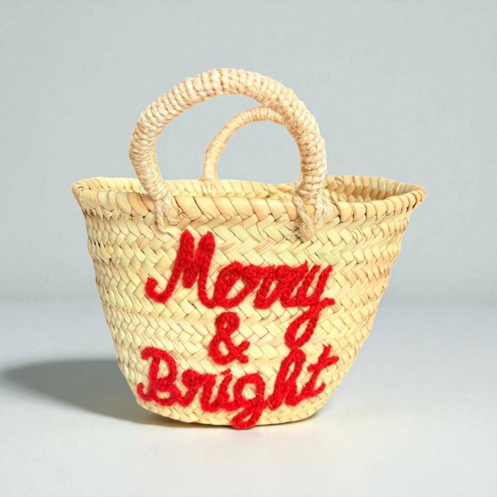 Handmade Christmas Mini Straw 'Merry And Bright' Basket