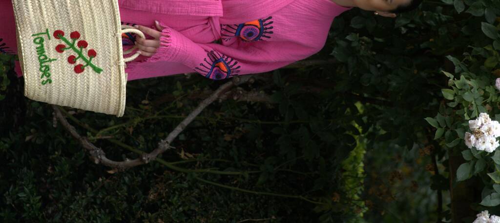 Celebrate understated elegance with this Moroccan straw tote, handwoven from sustainable palm leaves and delicately embroidered with Handwoven Tomato Vine Straw Basket