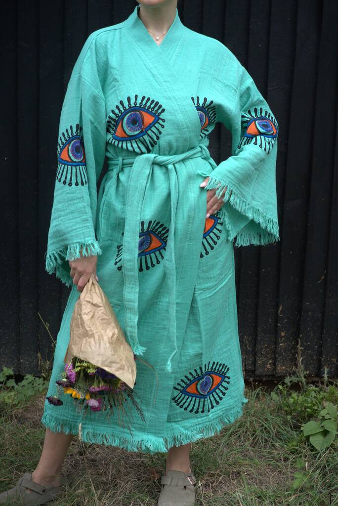 • Long Organic Cotton Robe: Jade Green Eye, thumbnail 2 of 4