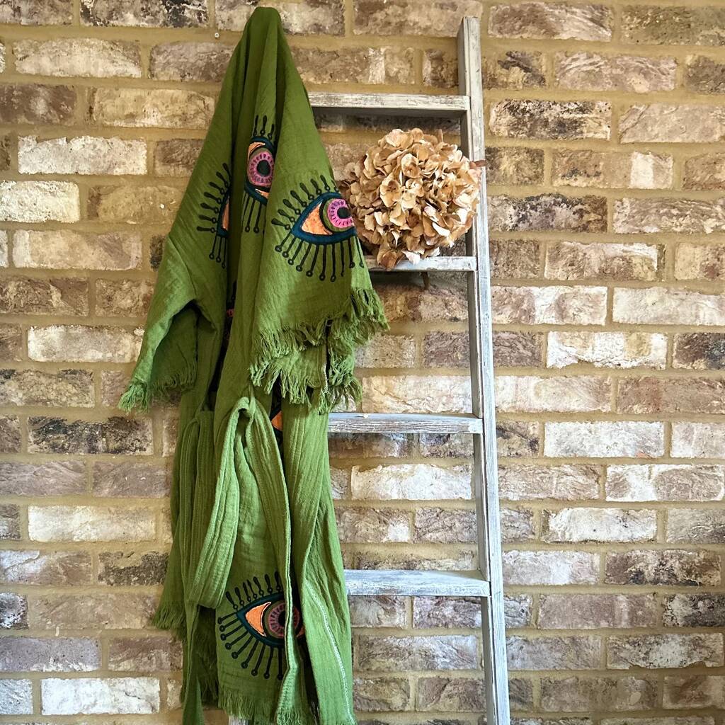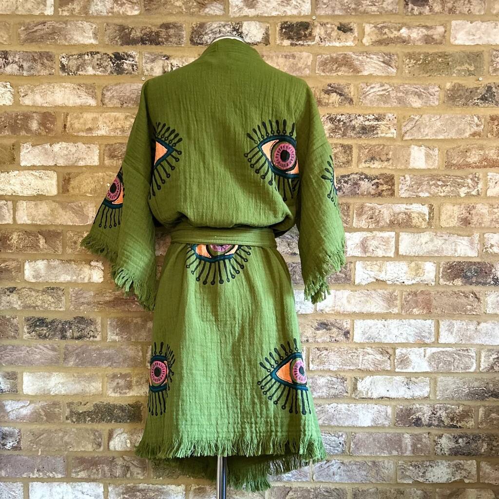 Organic Short Cotton Kimono: Khaki Green Eye