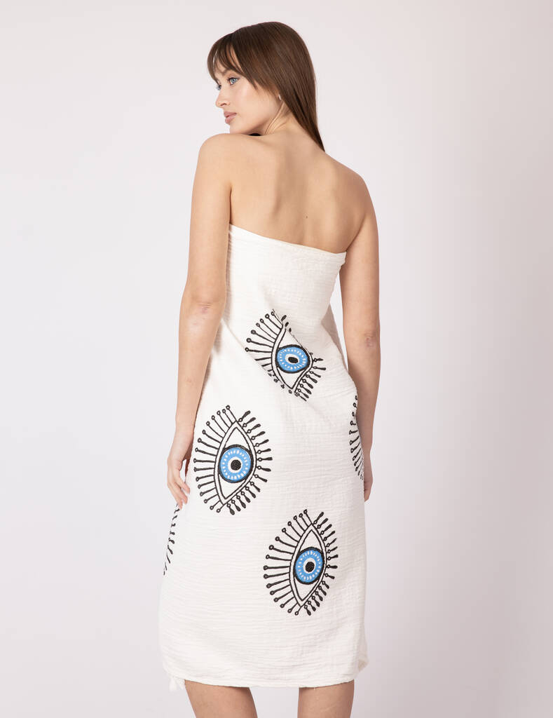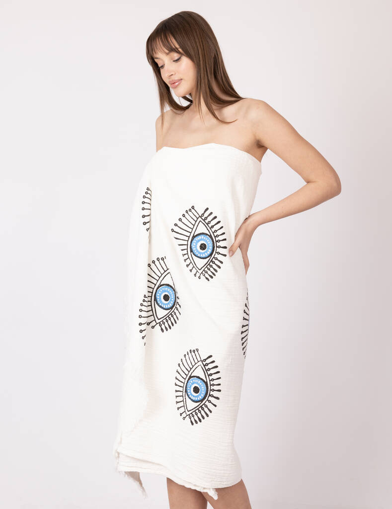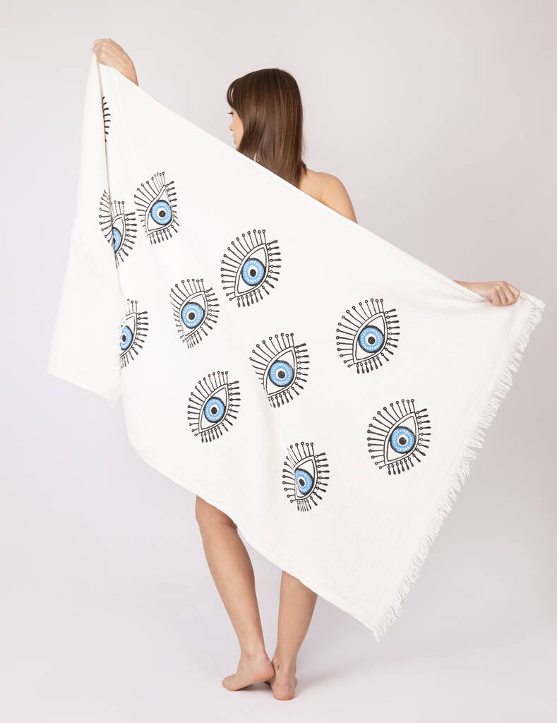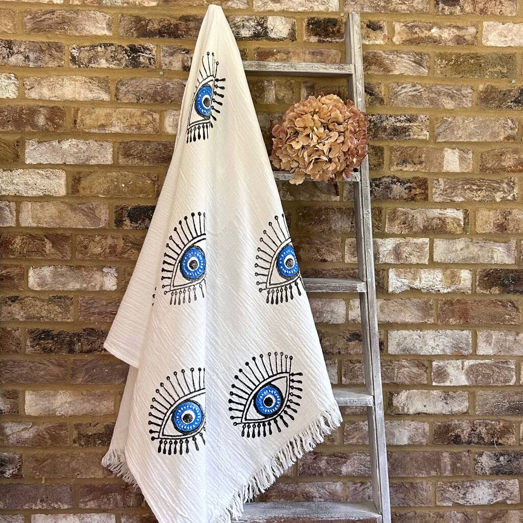 White With Blue Eye Organic Cotton Peshtemal Towel