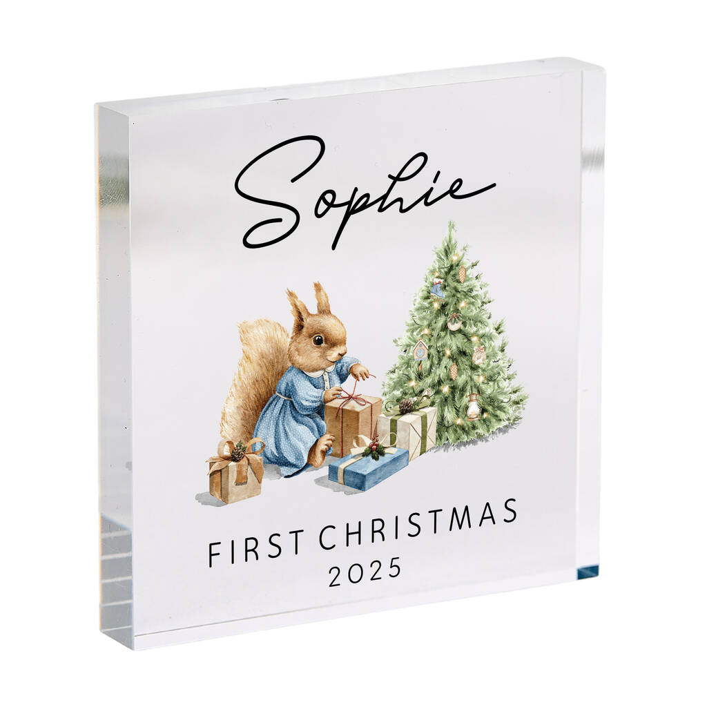 Baby’s First Christmas Gift Acrylic Block Woodland