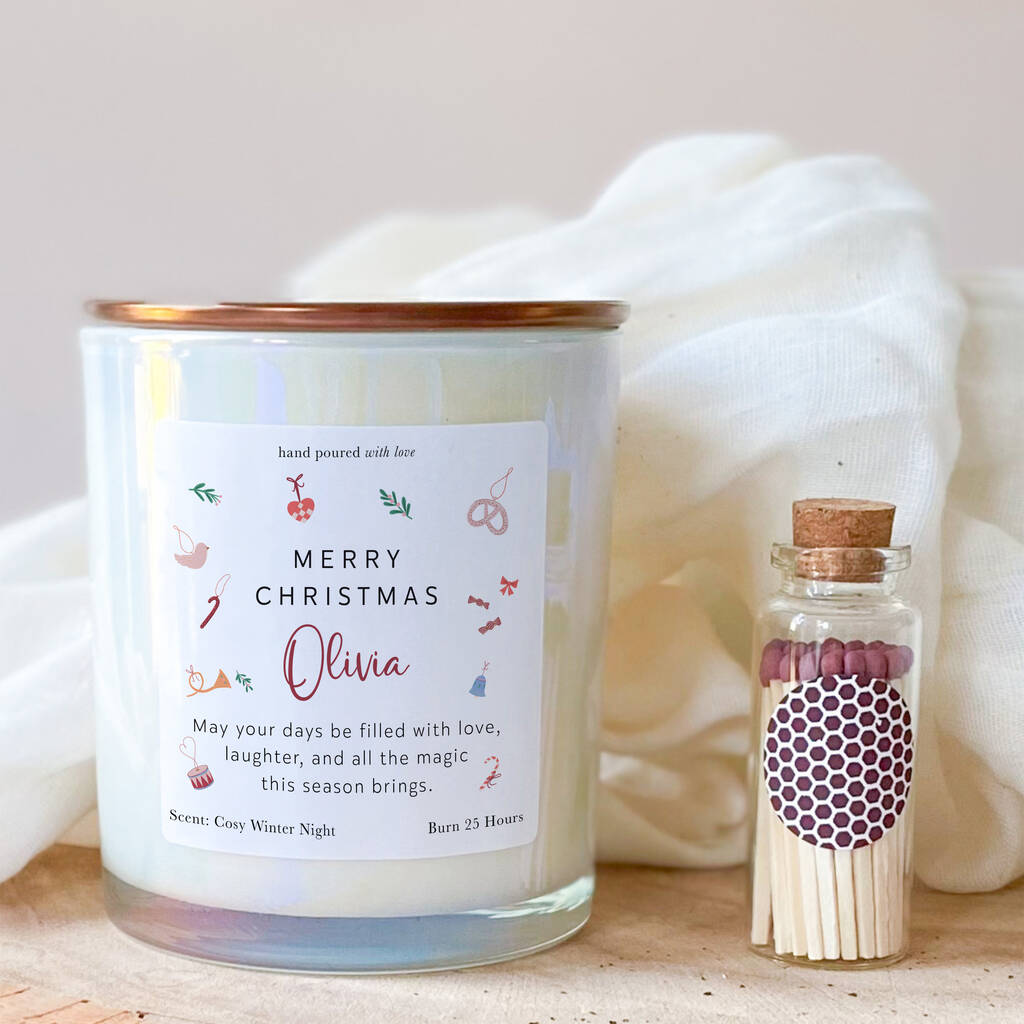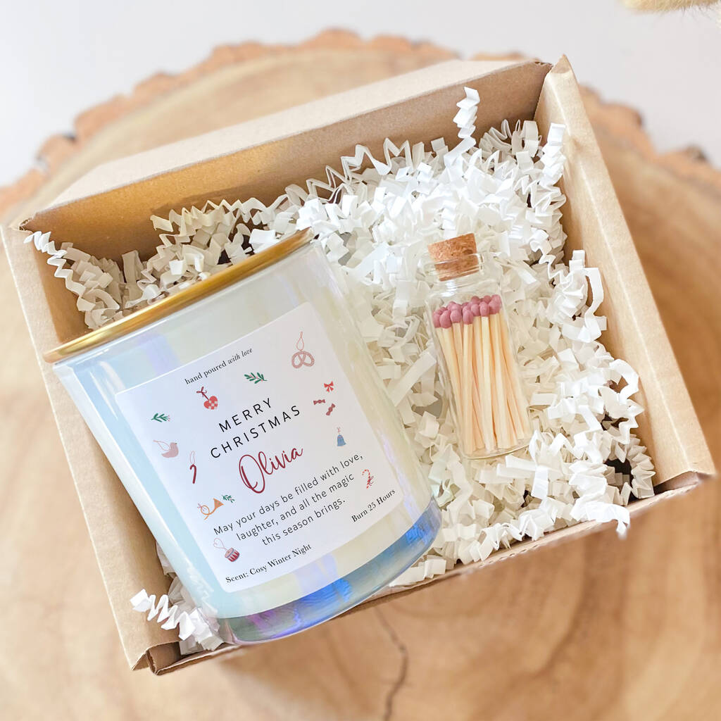 Personalised Christmas Candle Gift for Her with Name and Text - Festive Decor Keepsake
